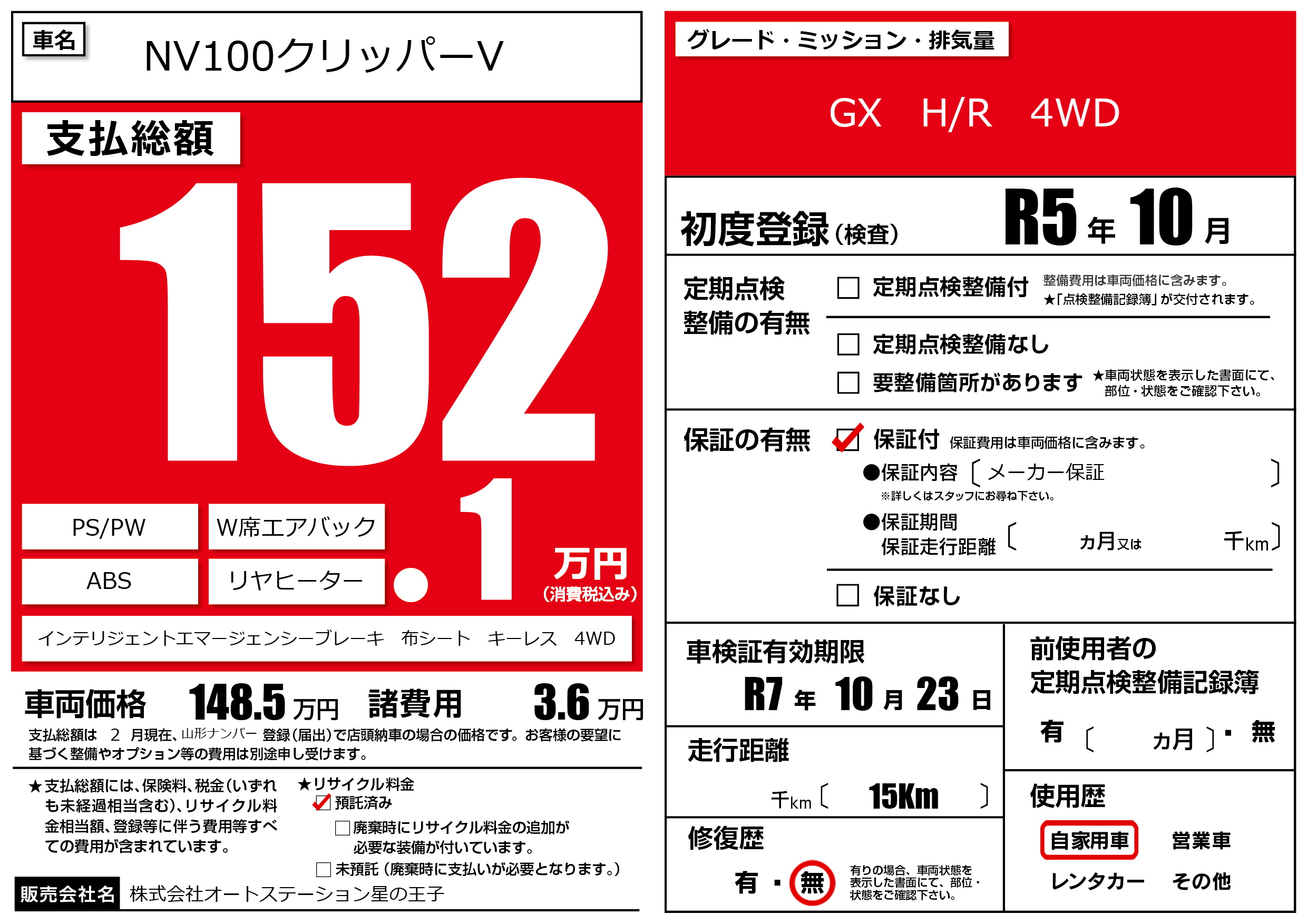 保証なし 保証内容(メーカー保証) ---ヶ月または()千kmまで |