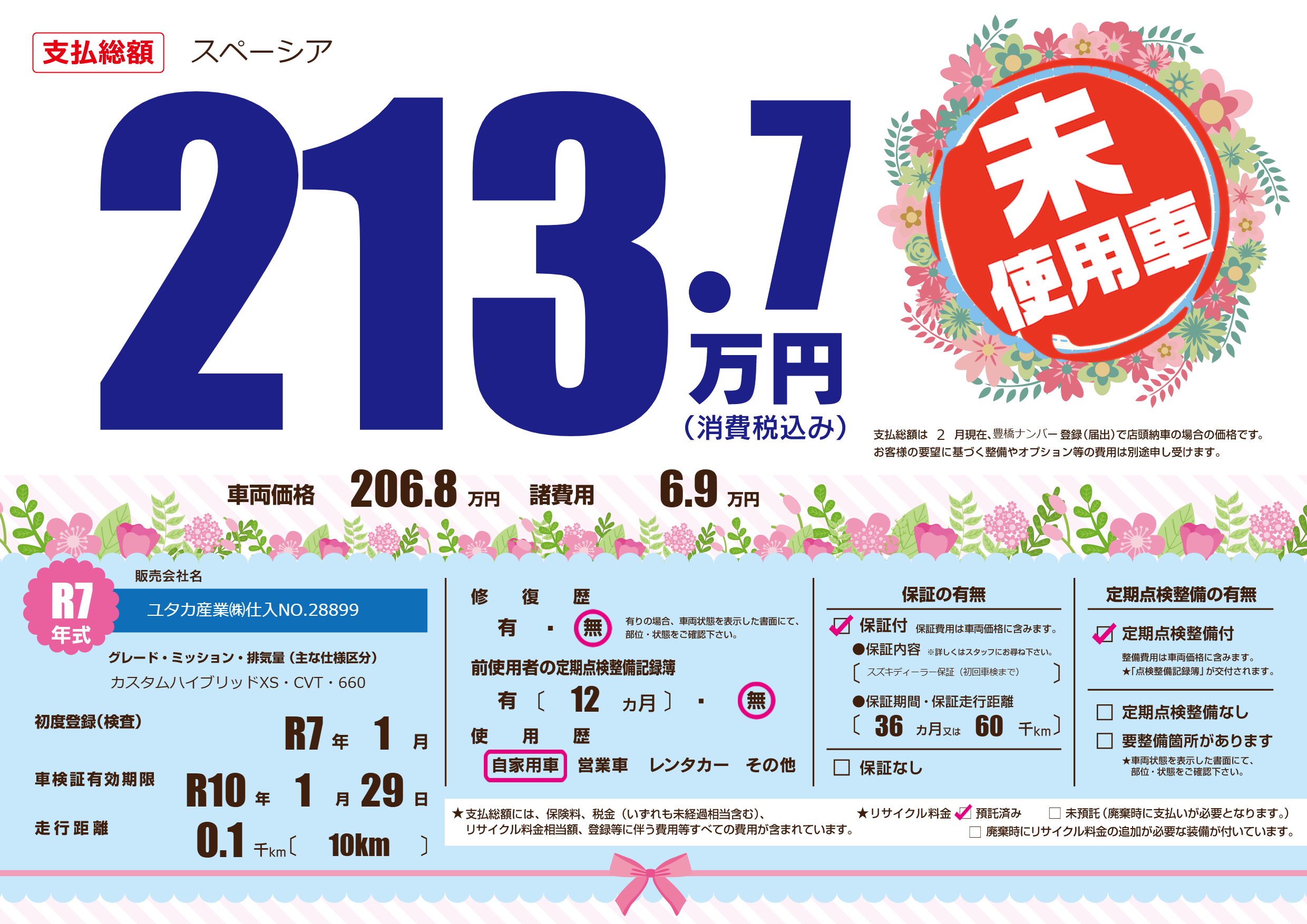| 車名 | スペーシア | グレード ミッション 排気量 |