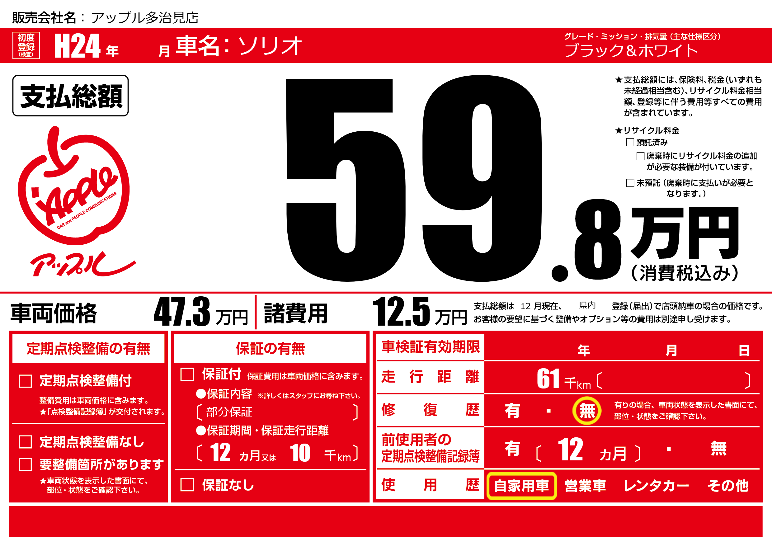 | 初年度登録 | H24年 | ||