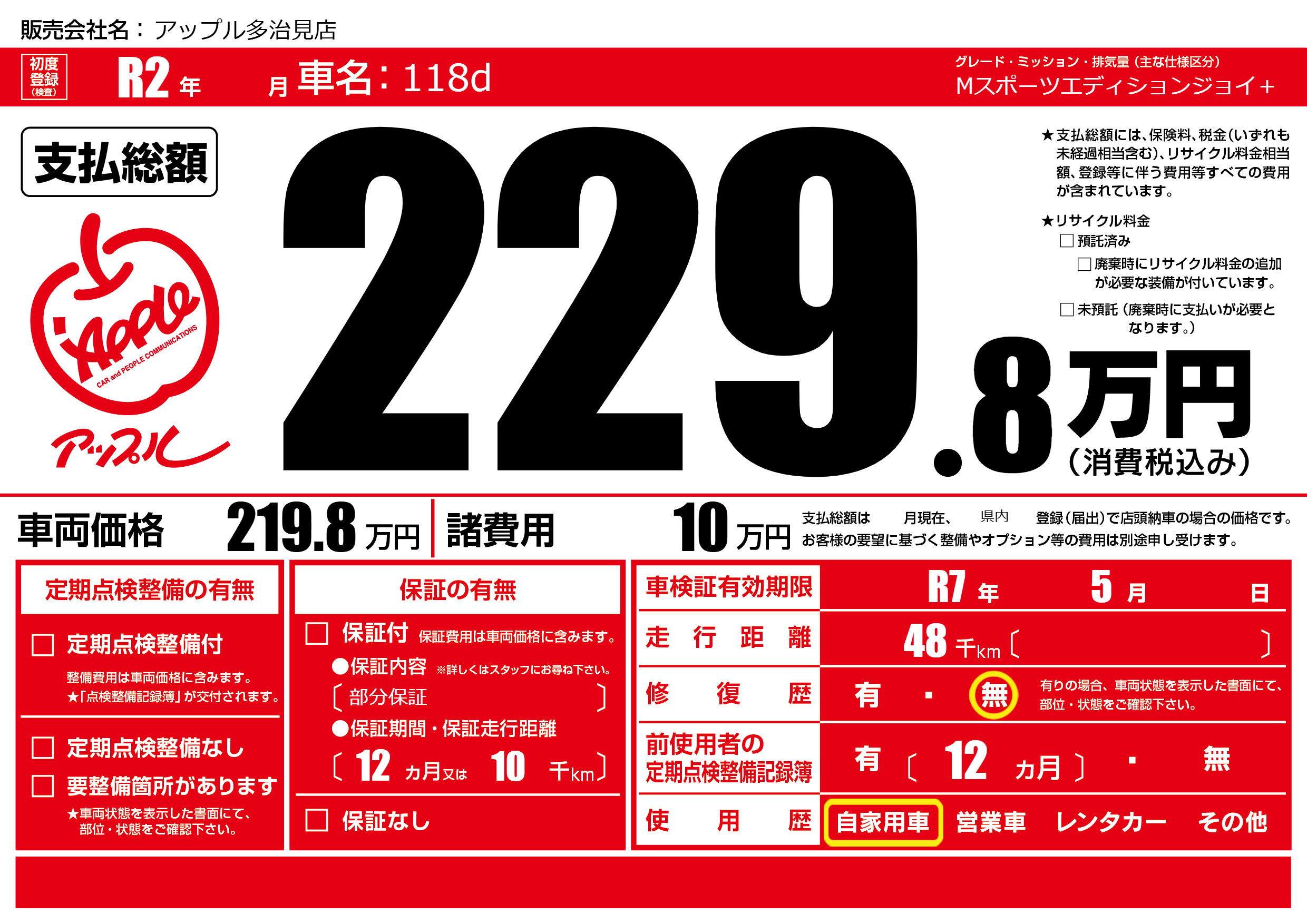 なし | 車検制限 | R7年5月---月 |