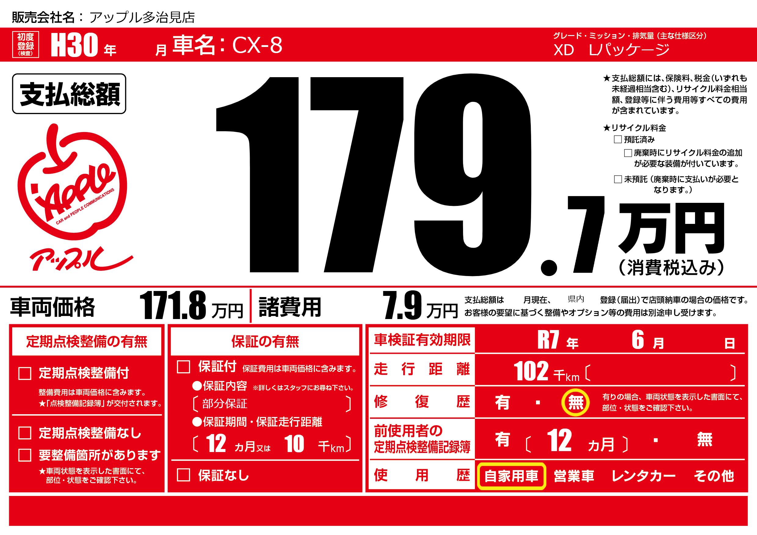 | 車名 | CX-8 | グレード ミッション 排気量 |