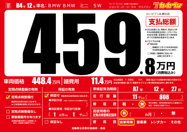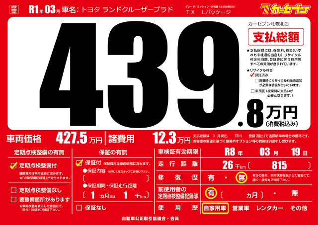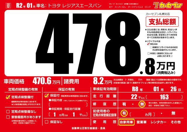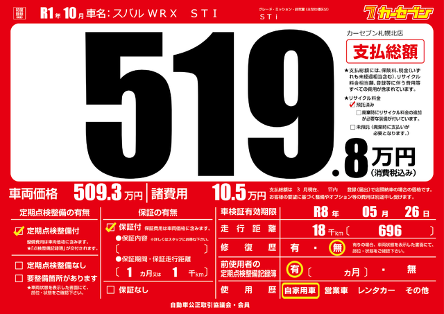 保証付き 保証内容(---) 1ヶ月または(1)千kmまで |