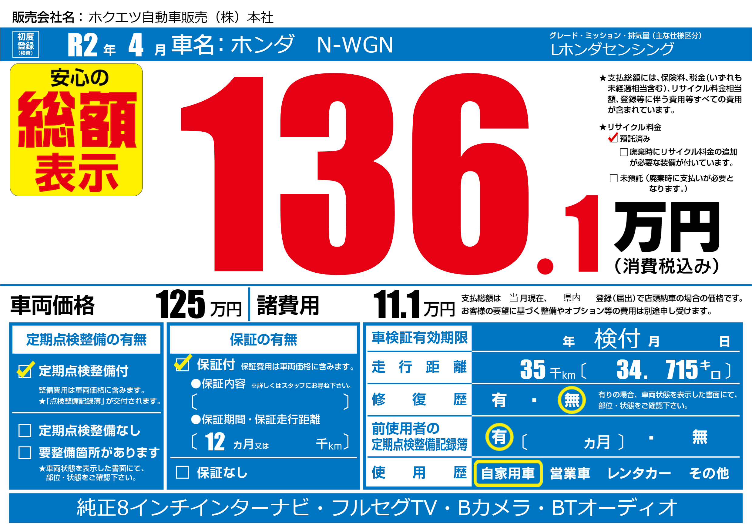 | 定期点検整備 | 定期点検整備あり | ||