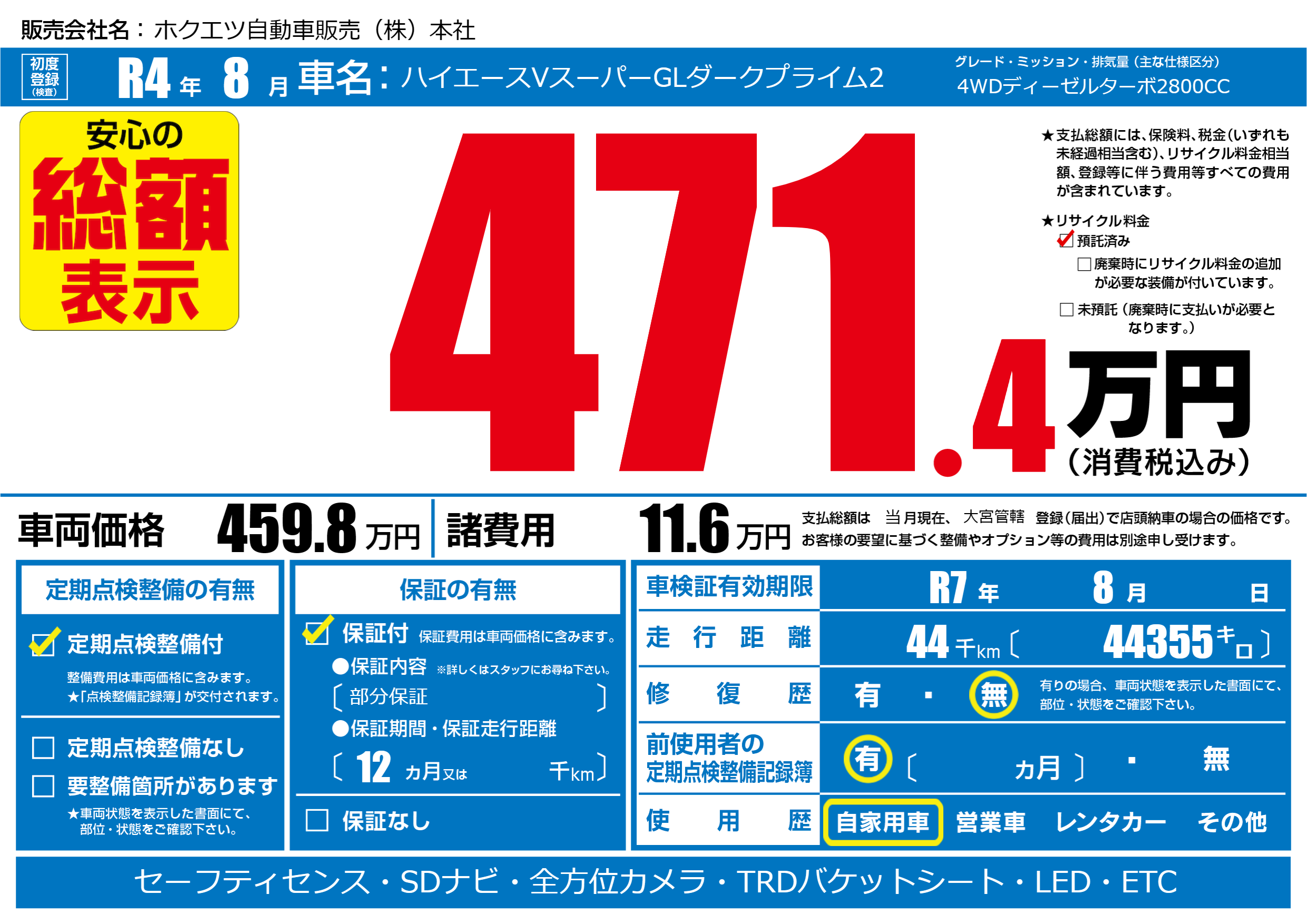 | 走行キロ | 4.4万km | ||