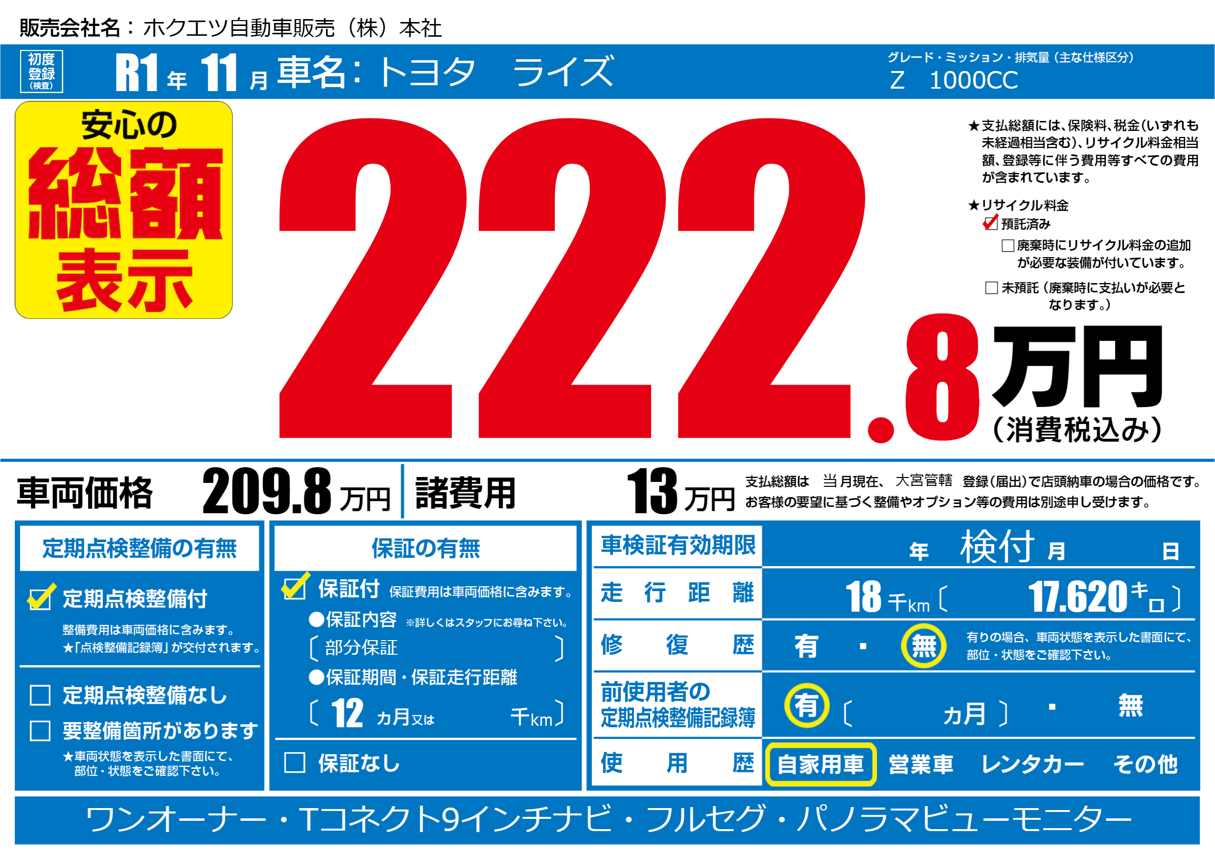 | 走行キロ | 1.8万km | 初年度登録 | R1年11月 |