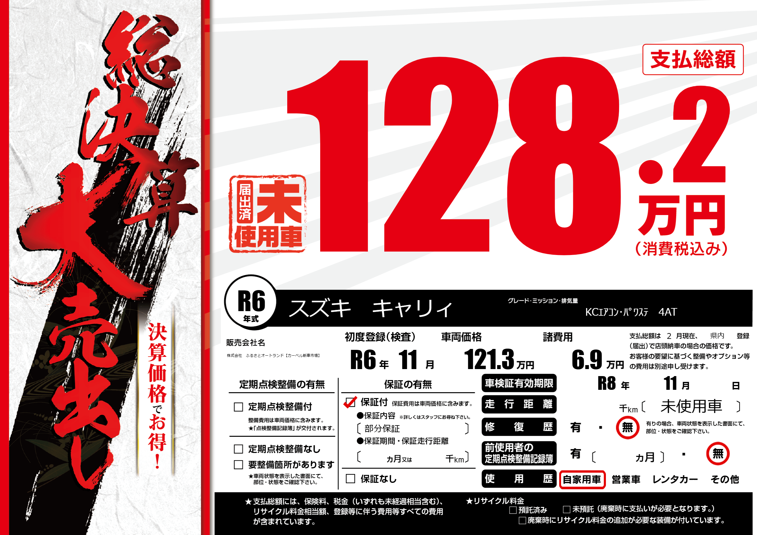 | 走行キロ | - | 初年度登録 | R6年11月 |