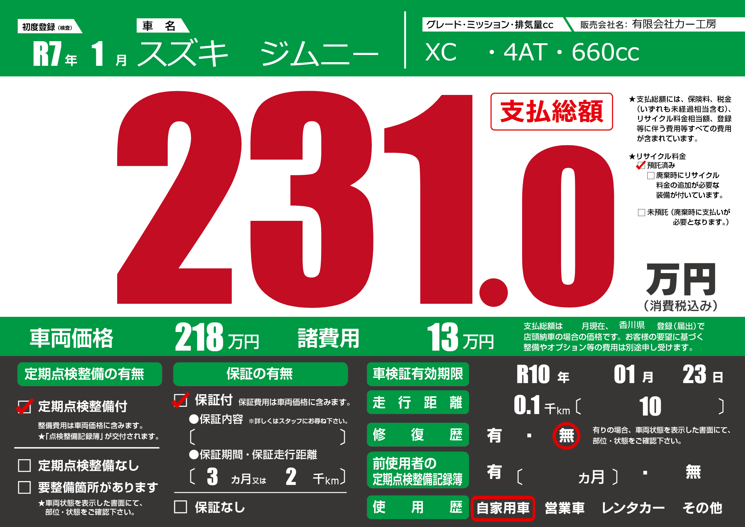 | 車名 | スズキ ジムニー | グレード ミッション 排気量 |
