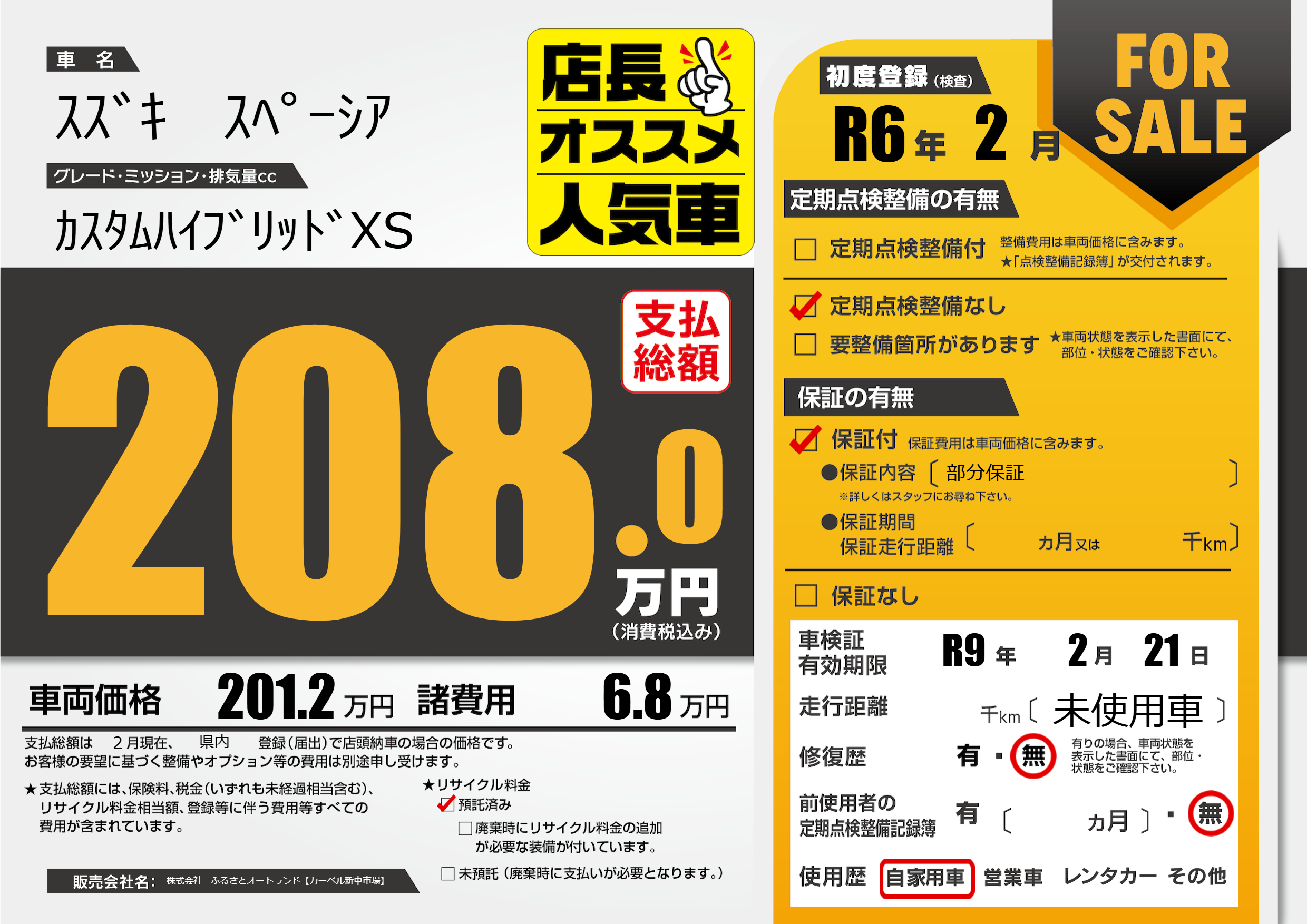 | 走行キロ | - | 初年度登録 | R6年2月 |