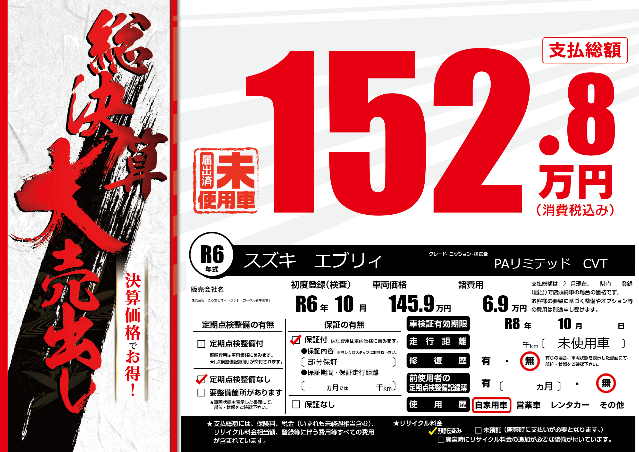 | 走行キロ | - | 初年度登録 | R6年10月 |