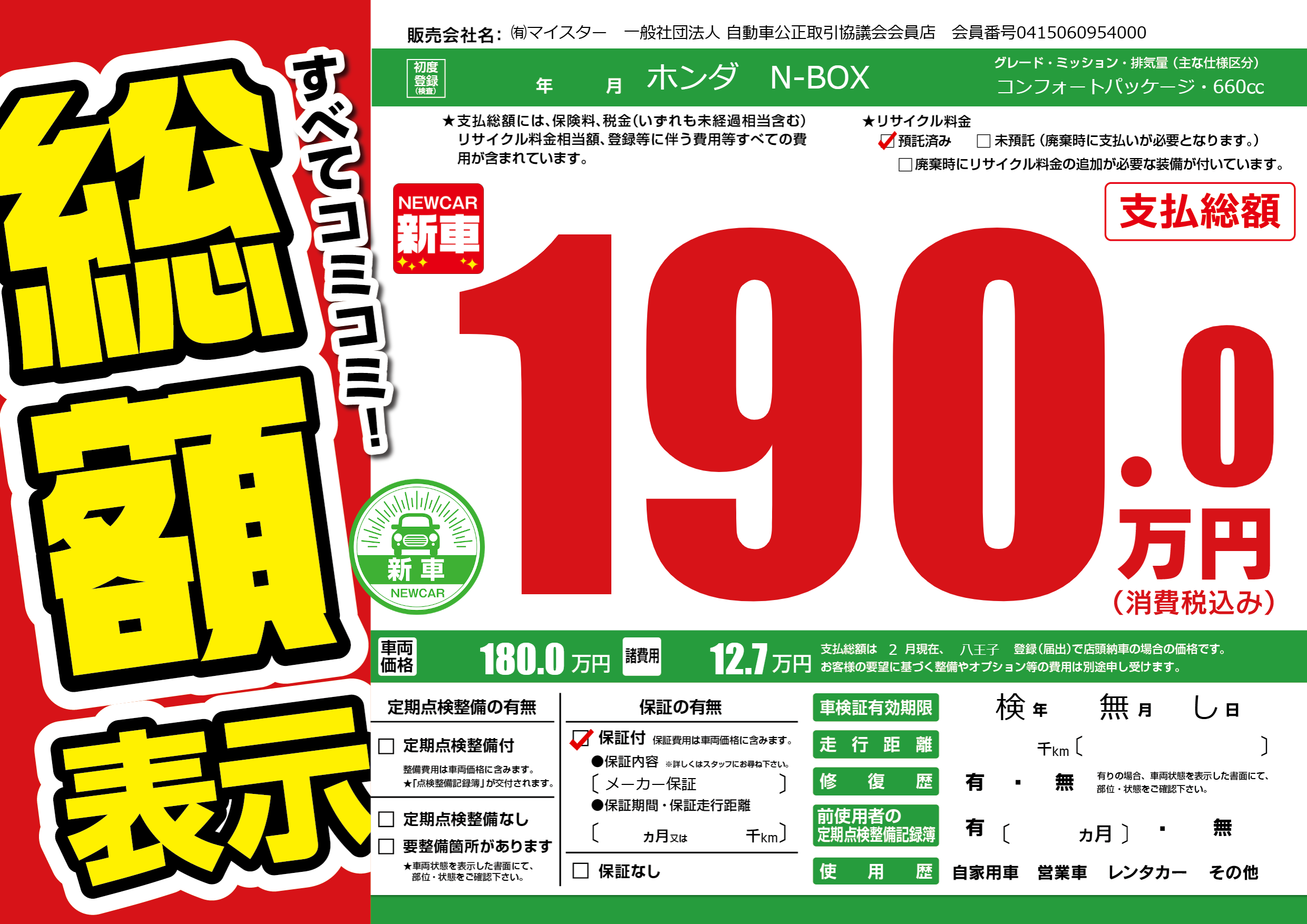 保証付き 保証内容(メーカー保証) ---ヶ月または()千kmまで |