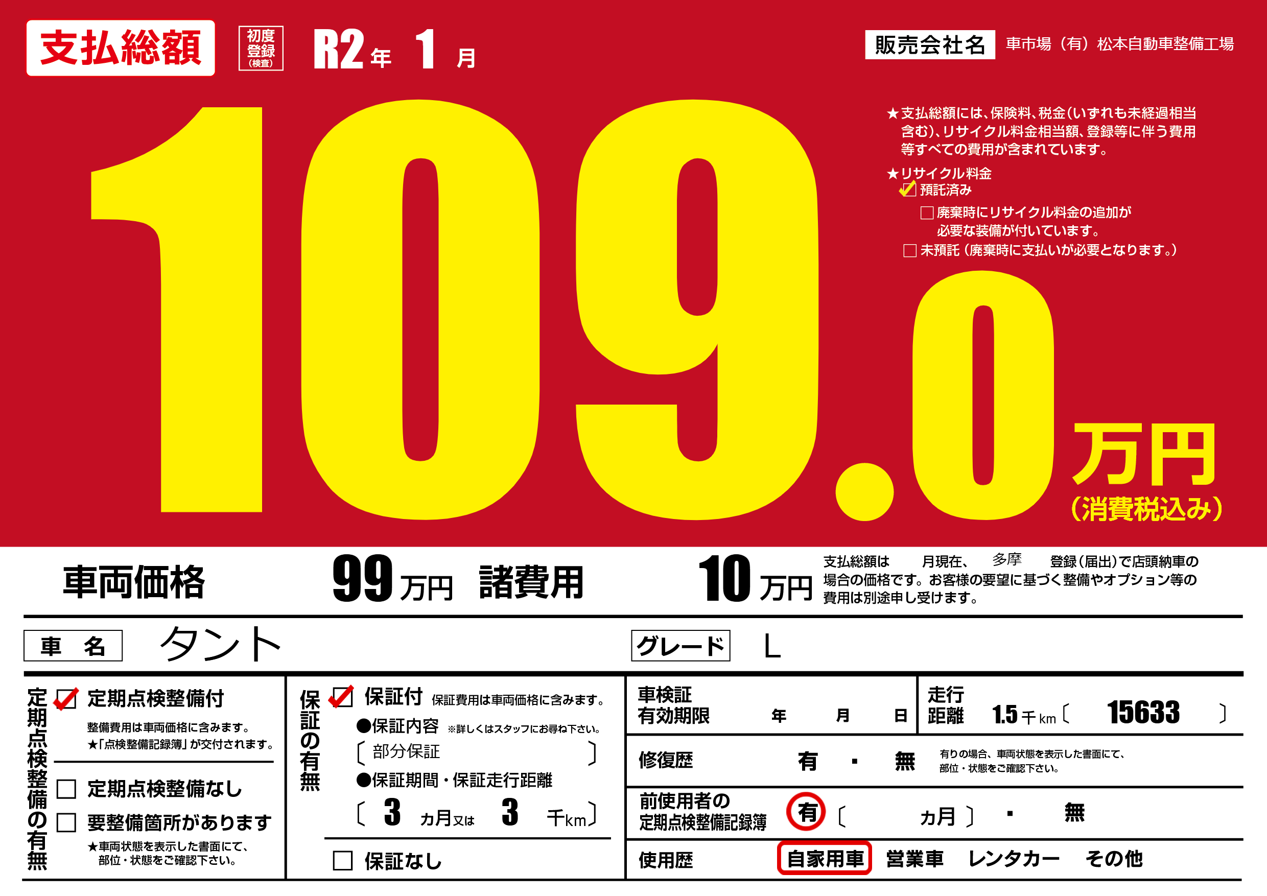 | 走行キロ | 0.1万km | 初年度登録 | R2年1月 |