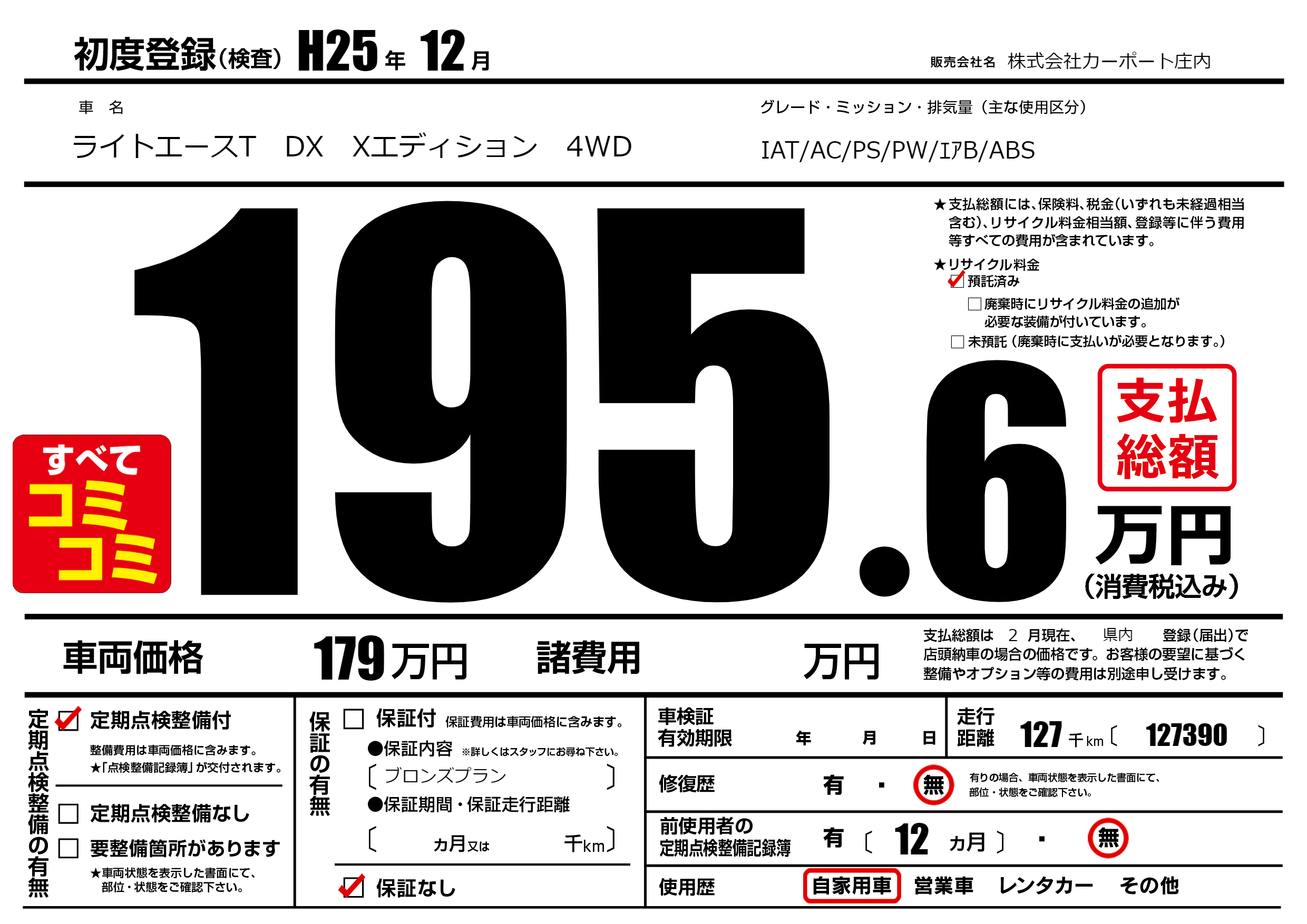 | 走行キロ | 12.7万km | ||