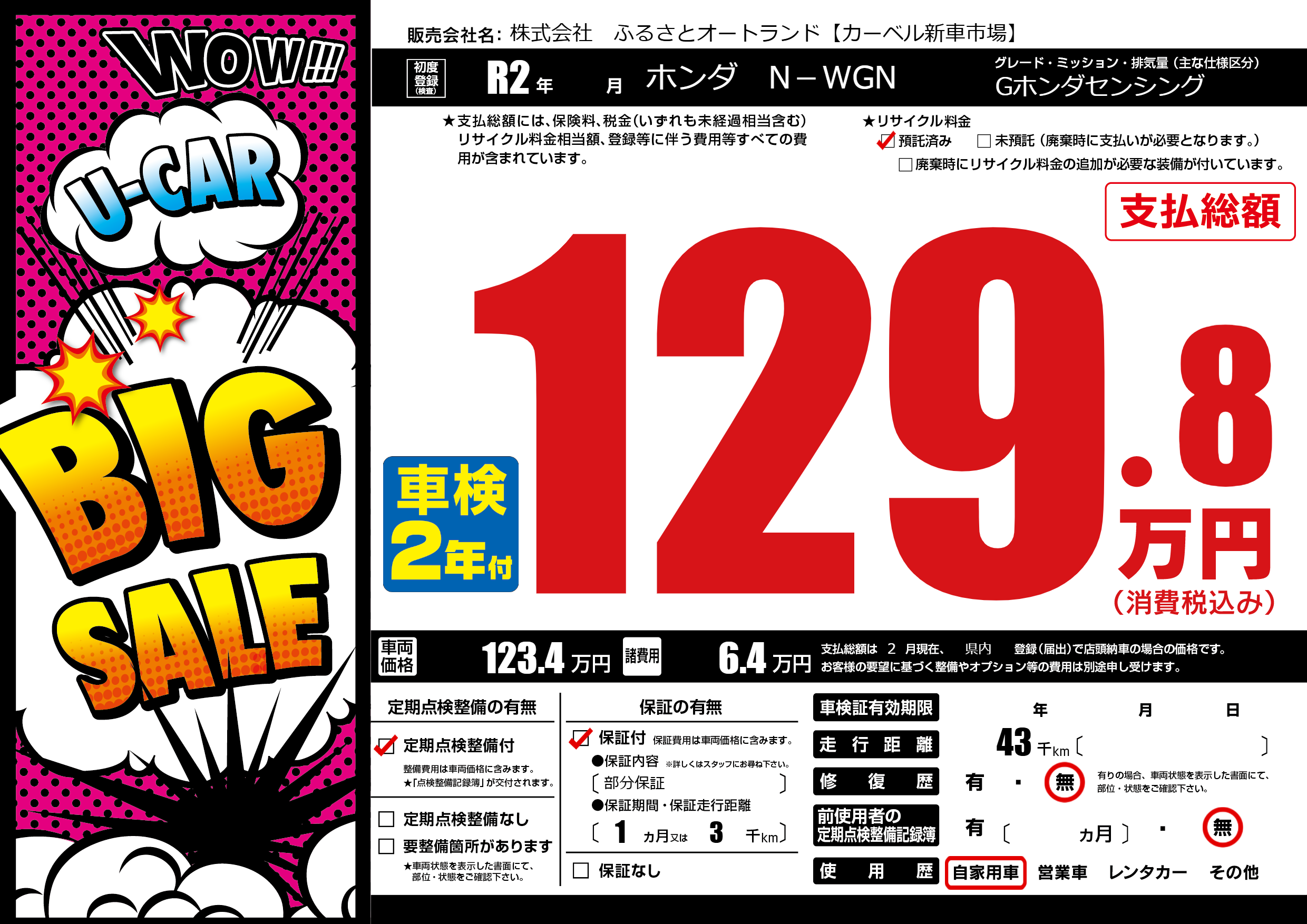 | 車名 | ホンダ N-WGN | グレード ミッション 排気量 |