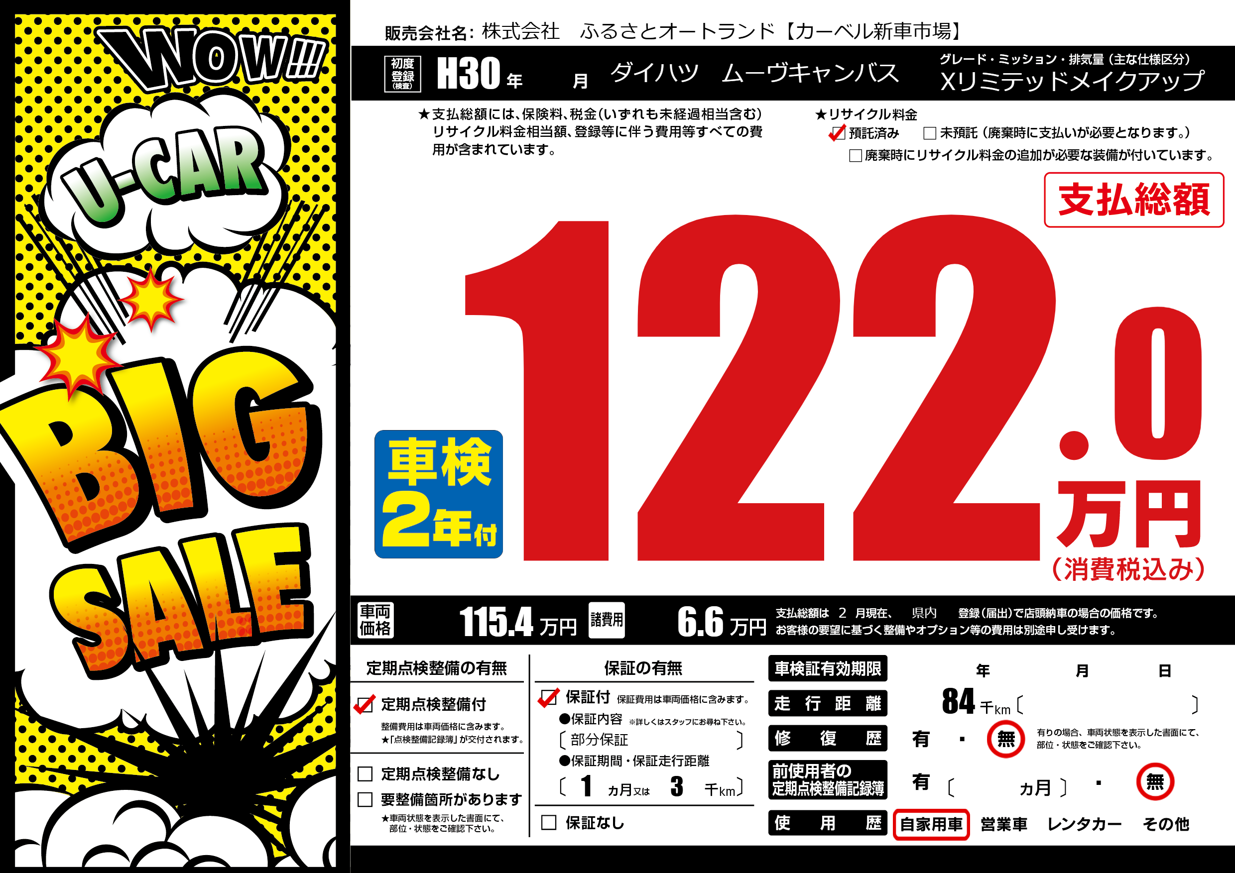 | 走行キロ | 8.4万km | 初年度登録 | H30年---月 |