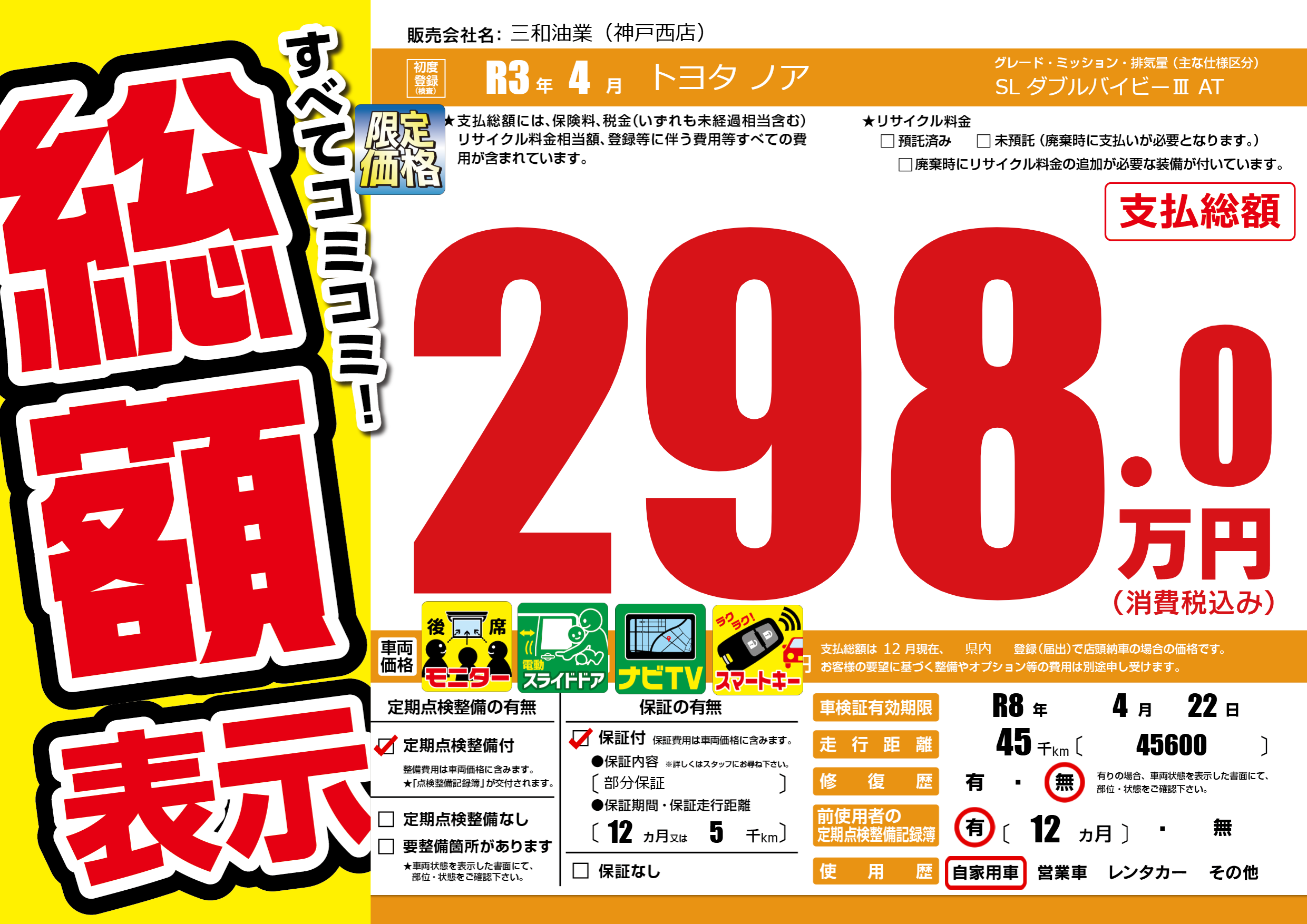 | 車検制限 | R8年 4月 22日 | ||