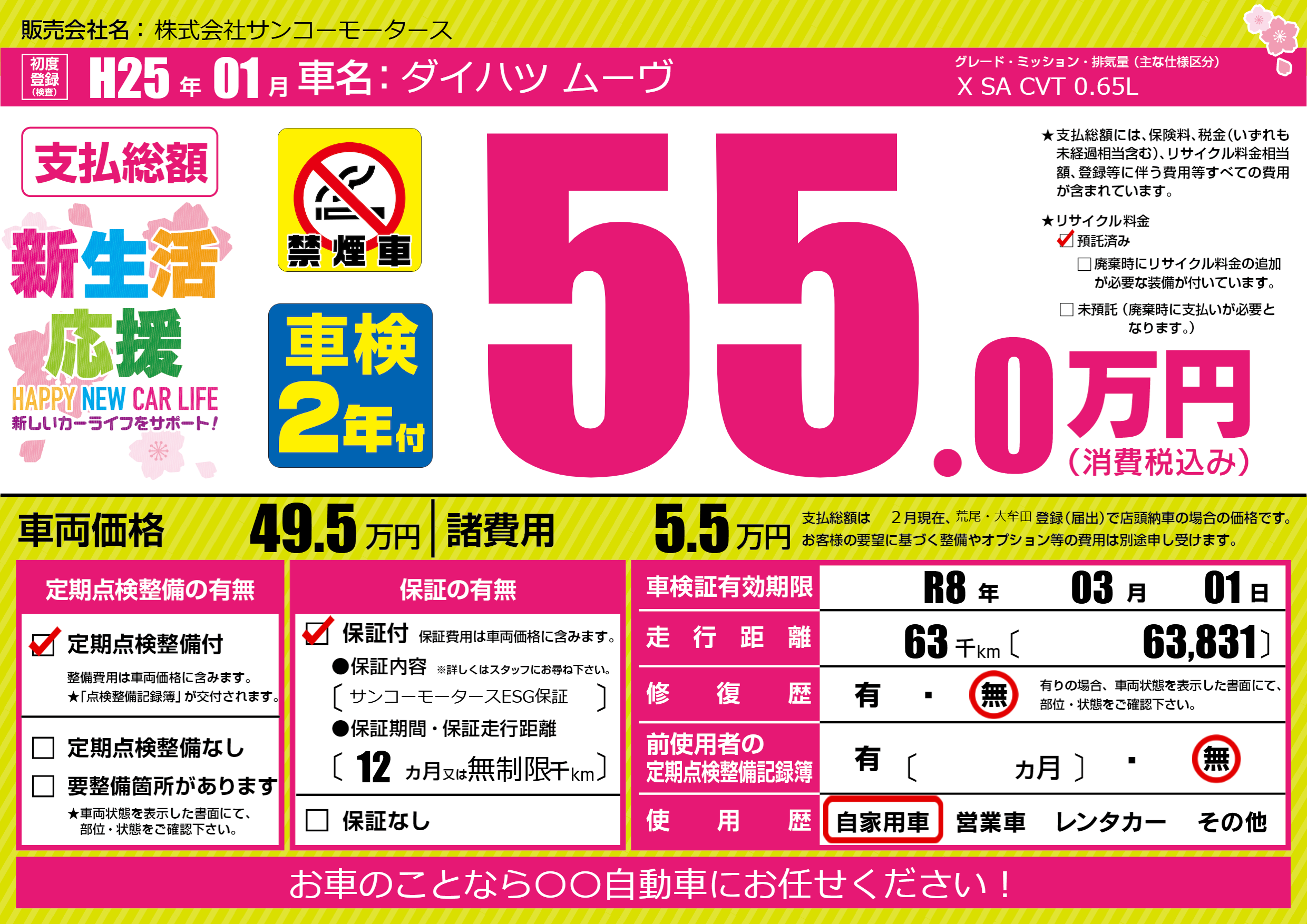 | 車検制限 | R8年 03月 01日 | ||