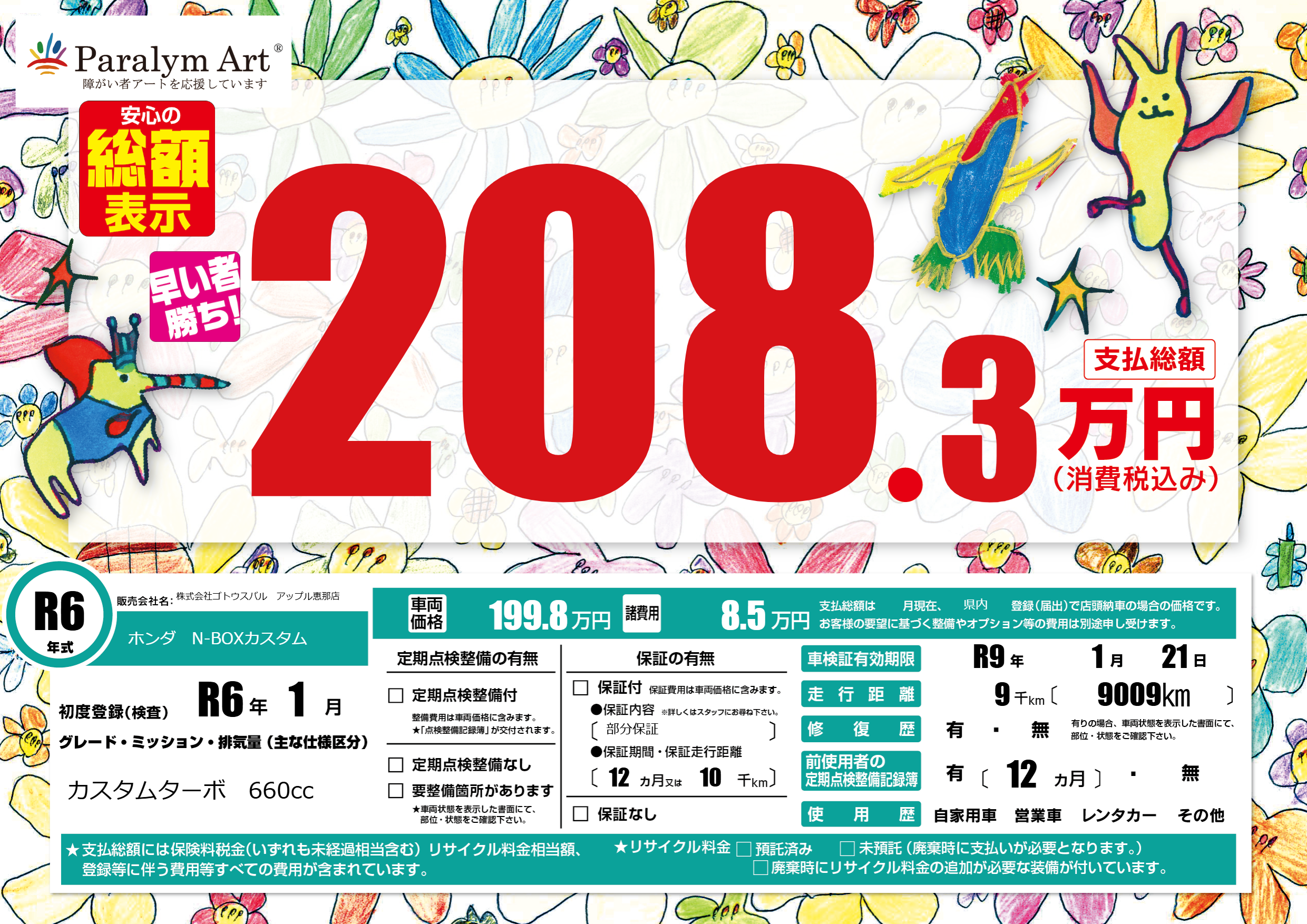 | 走行キロ | 0.9万km | 初年度登録 | R6年1月 |
