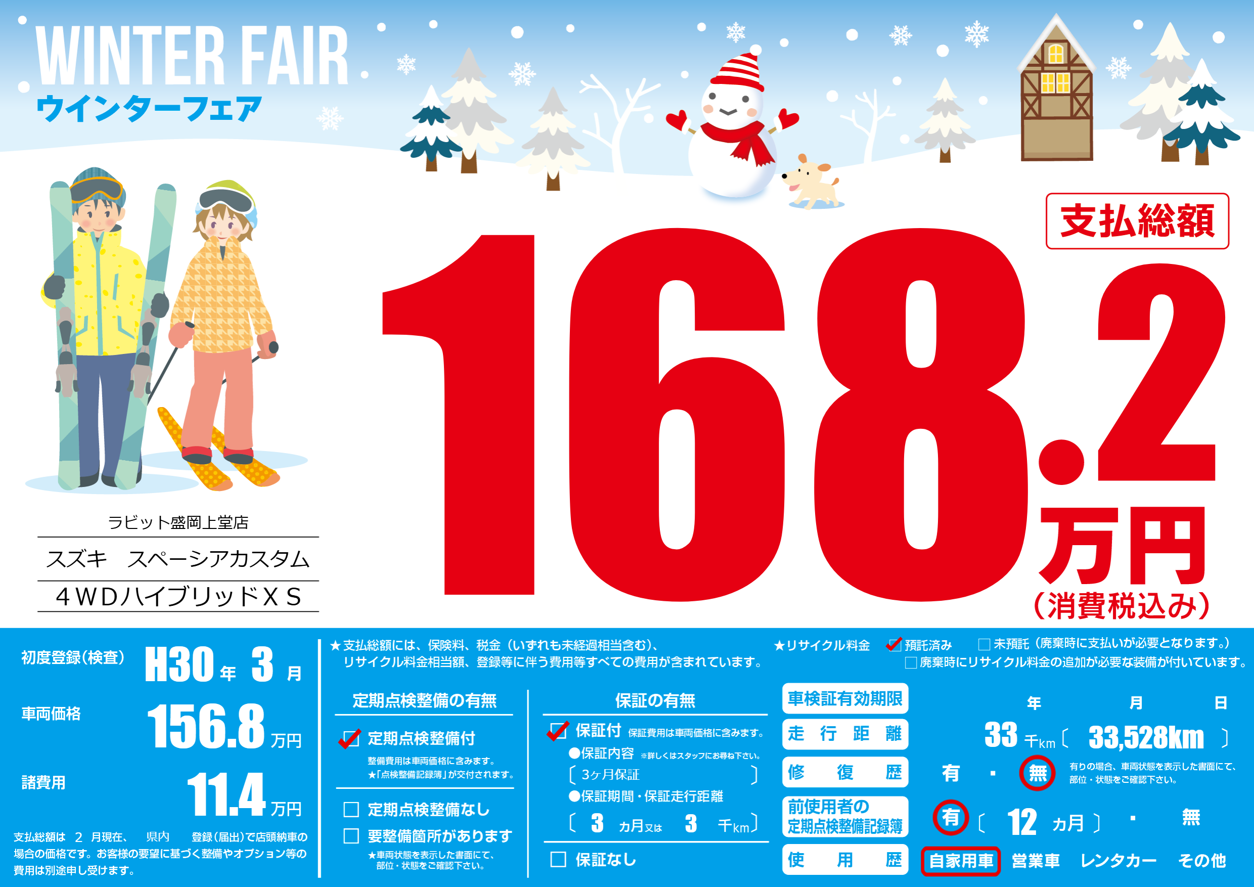 | 走行キロ | 3.3万km | 初年度登録 | H30年3月 |