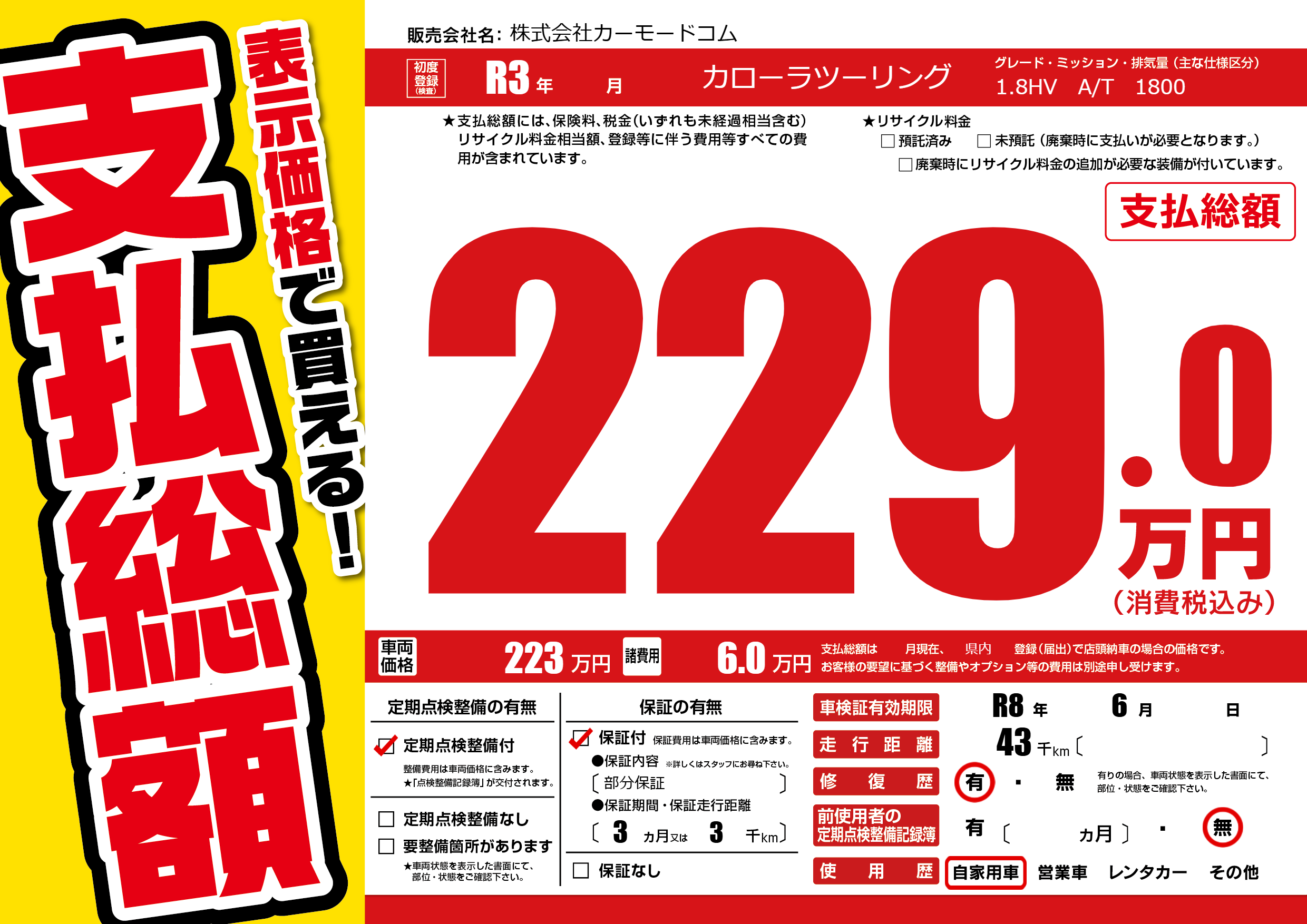 なし | 車検制限 | R8年6月---月 |