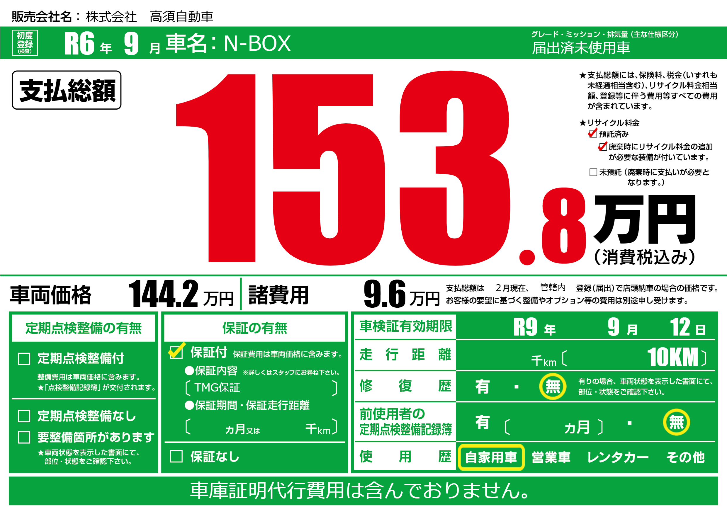 保証付き 保証内容(TMG保証) ---ヶ月または()千kmまで |