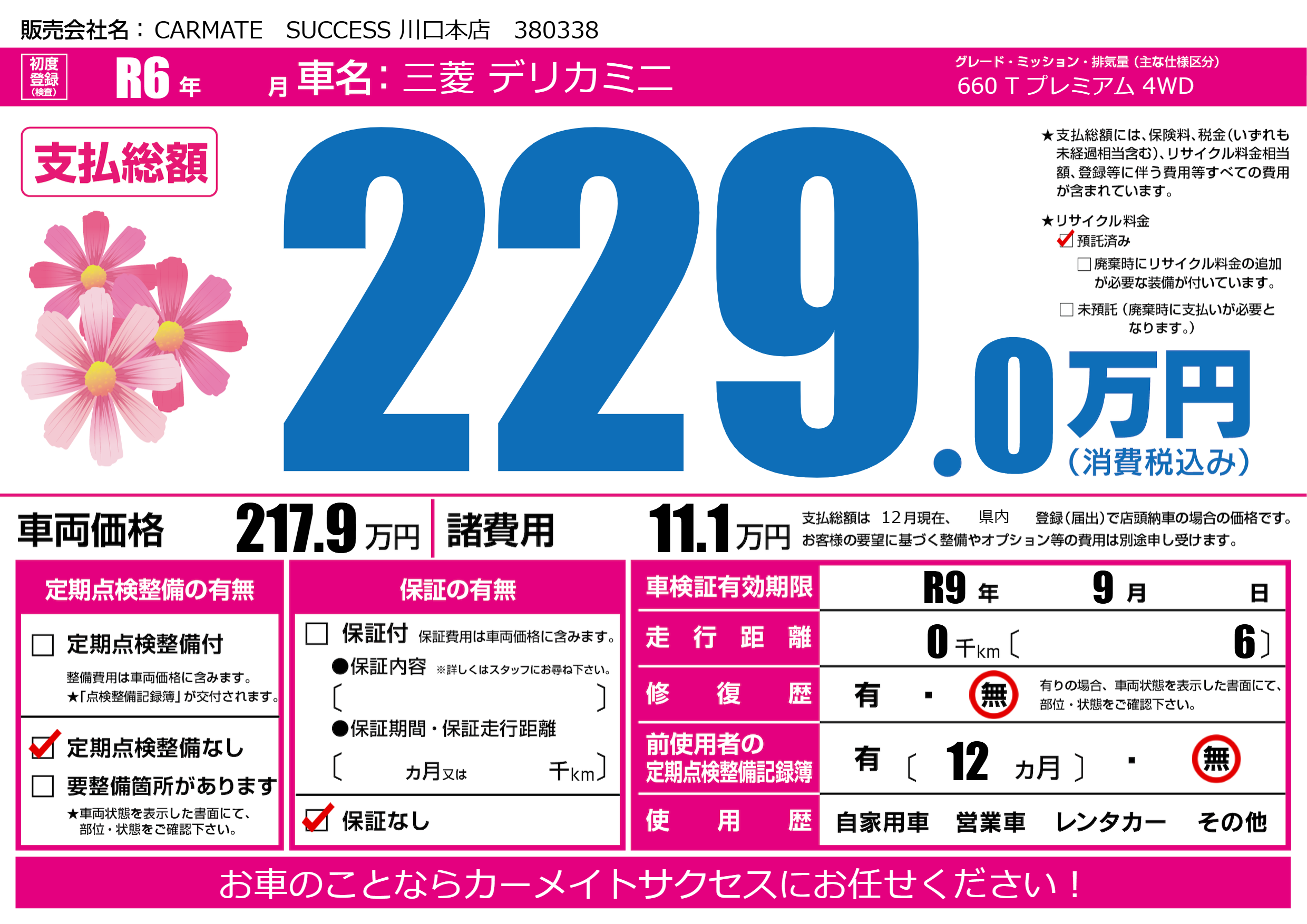 | 車名 | 三菱 デリカミニ | グレード ミッション 排気量 |