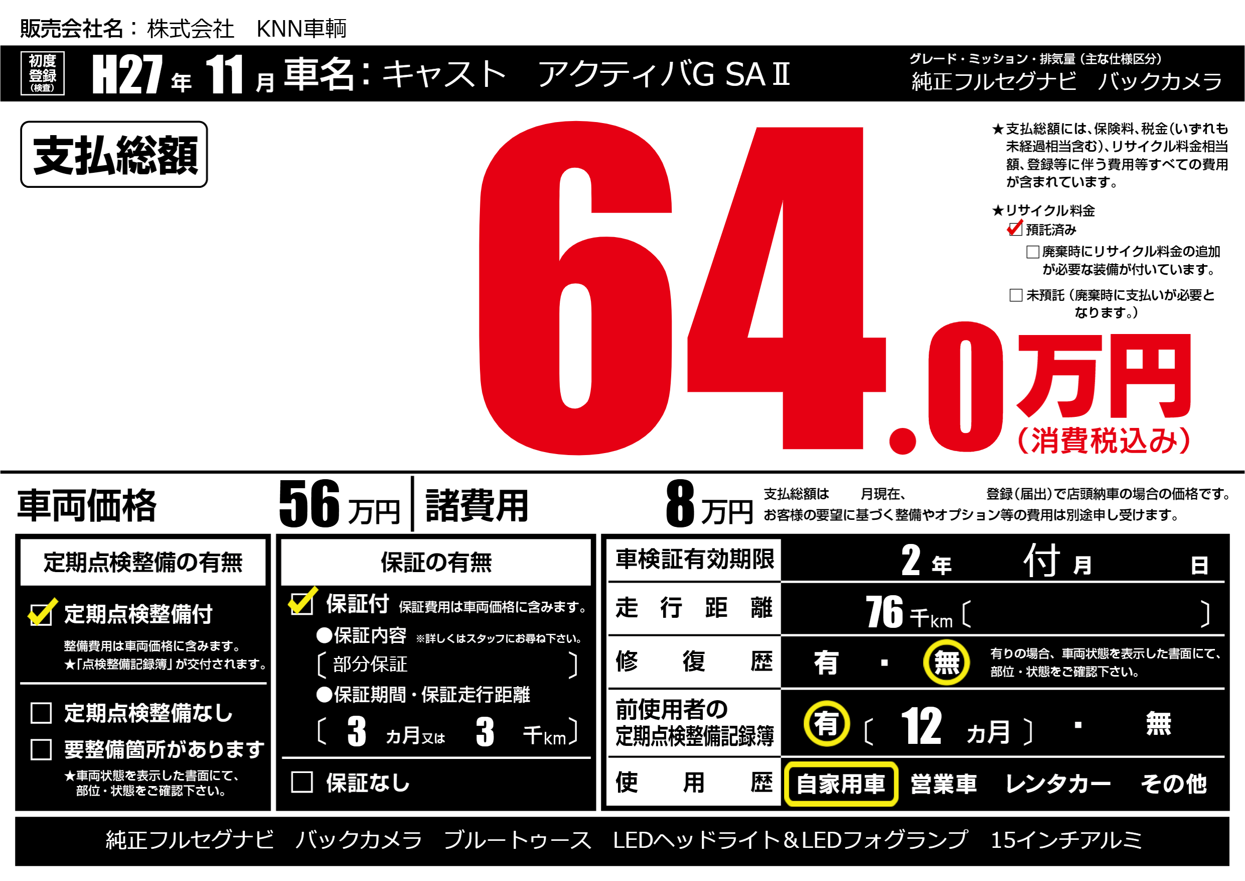 | 定期点検整備 | 定期点検整備あり | ||