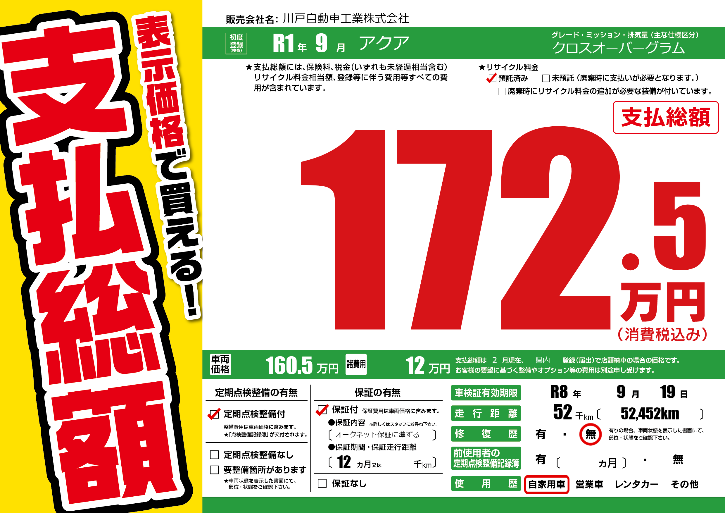 なし | 車検制限 | R8年9月19月 |