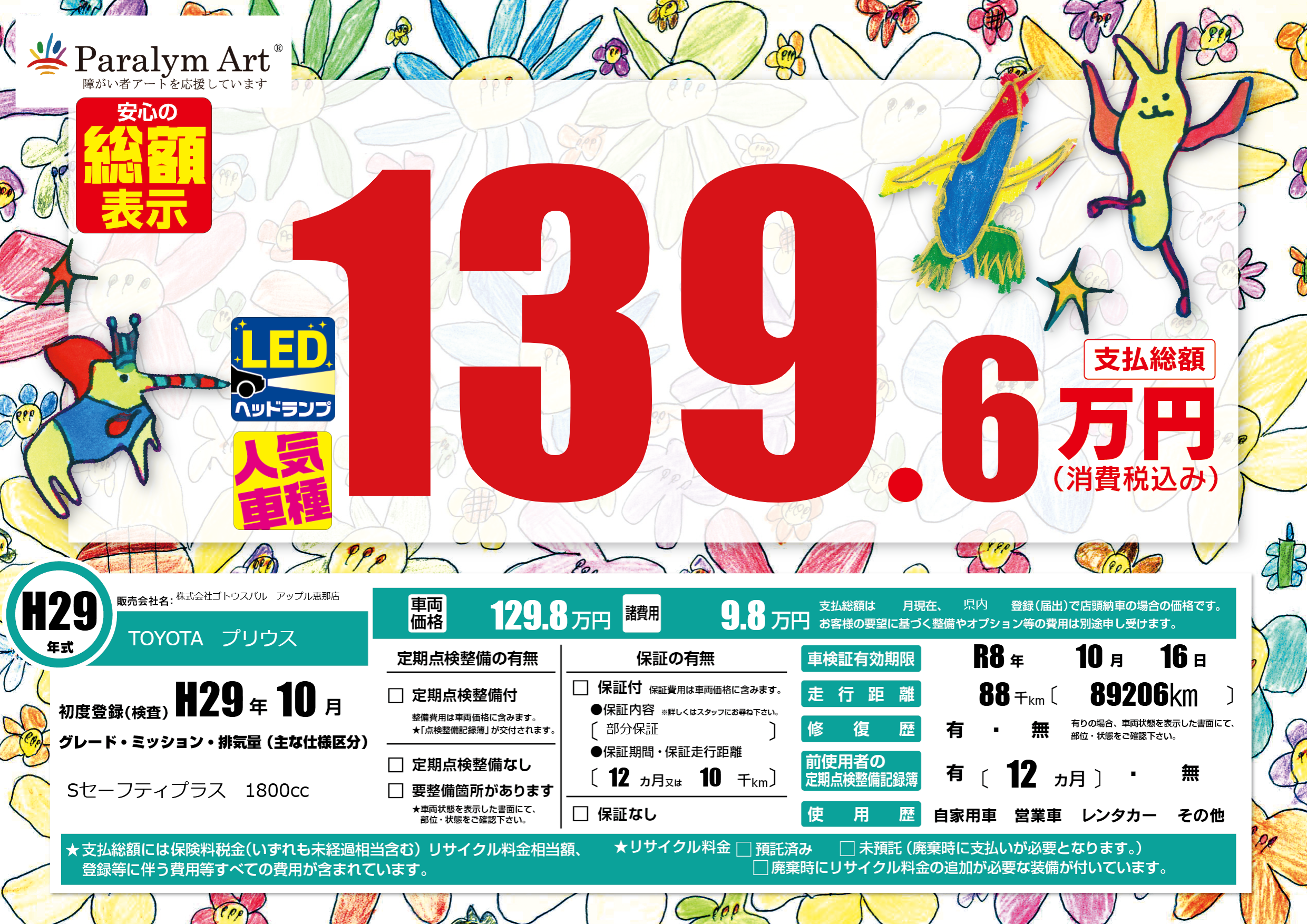 | 車名 | TOYOTA プリウス | グレード ミッション 排気量 |