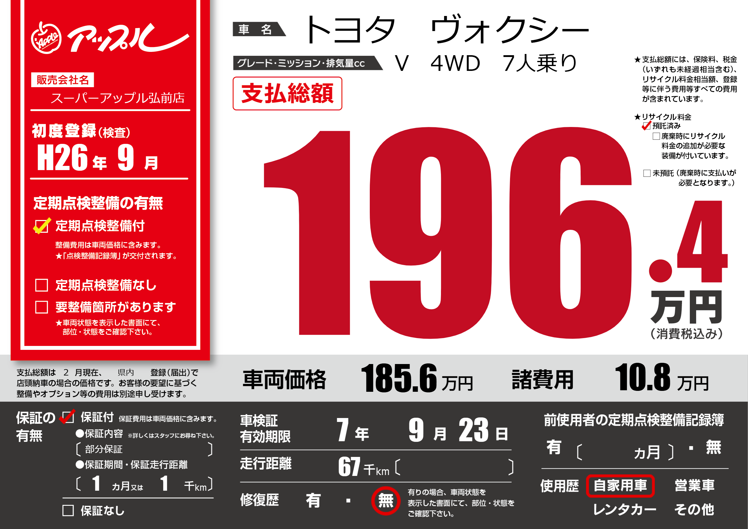 | 定期点検整備 | 定期点検整備あり | ||