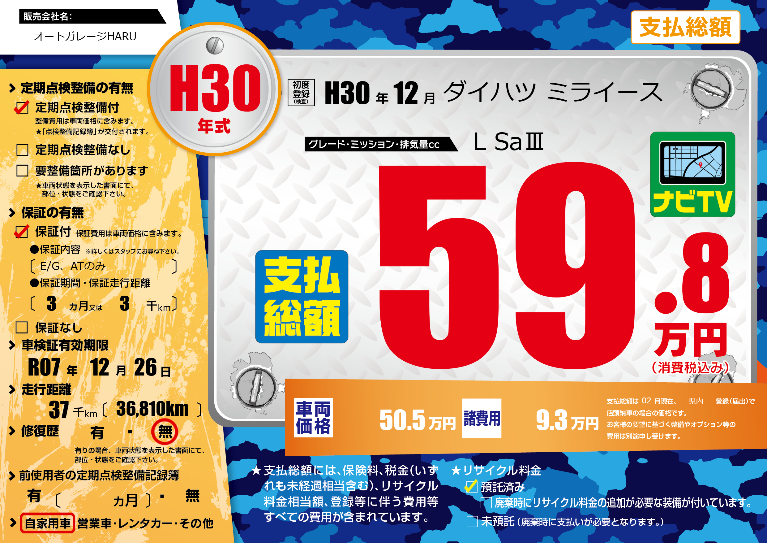 | 車検制限 | R07年 12月 26日 | ||
