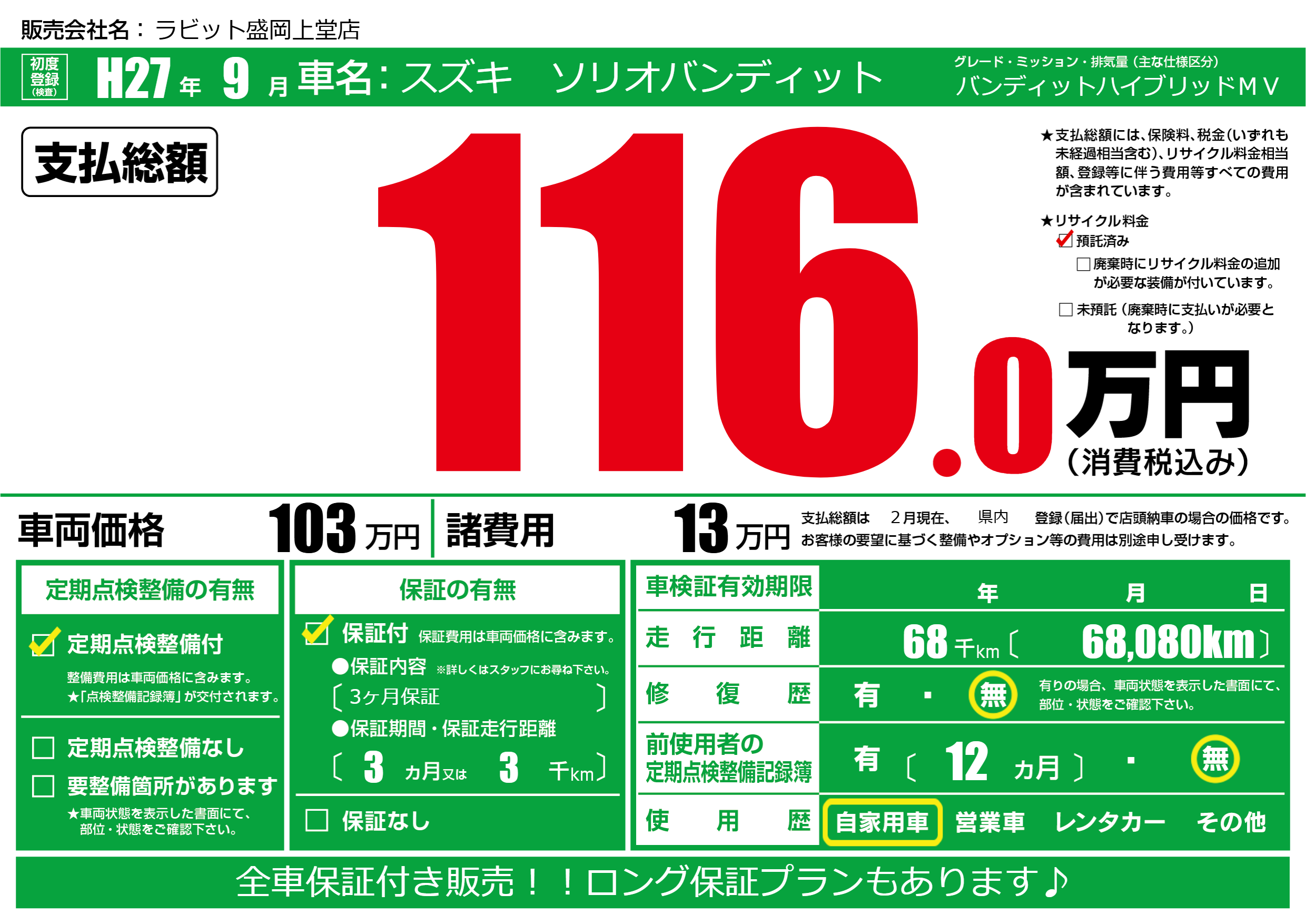 保証内容(3ヶ月保証) 3ヶ月または3千km