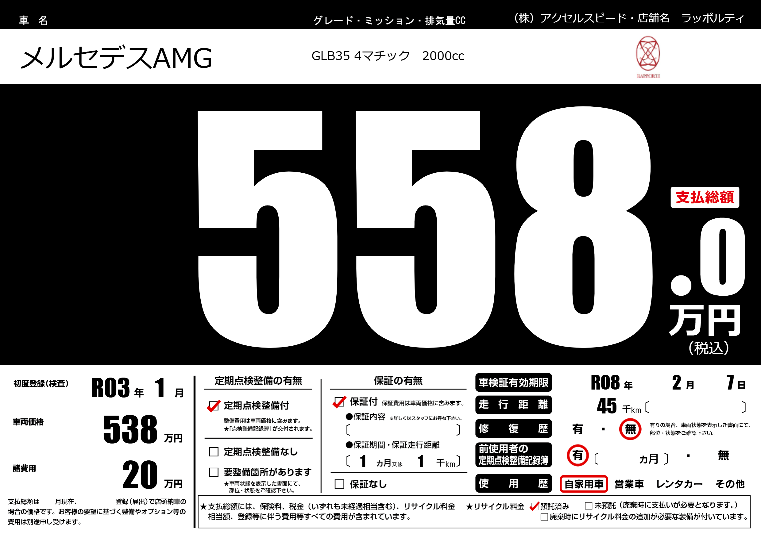なし | 車検制限 | R08年2月7月 |