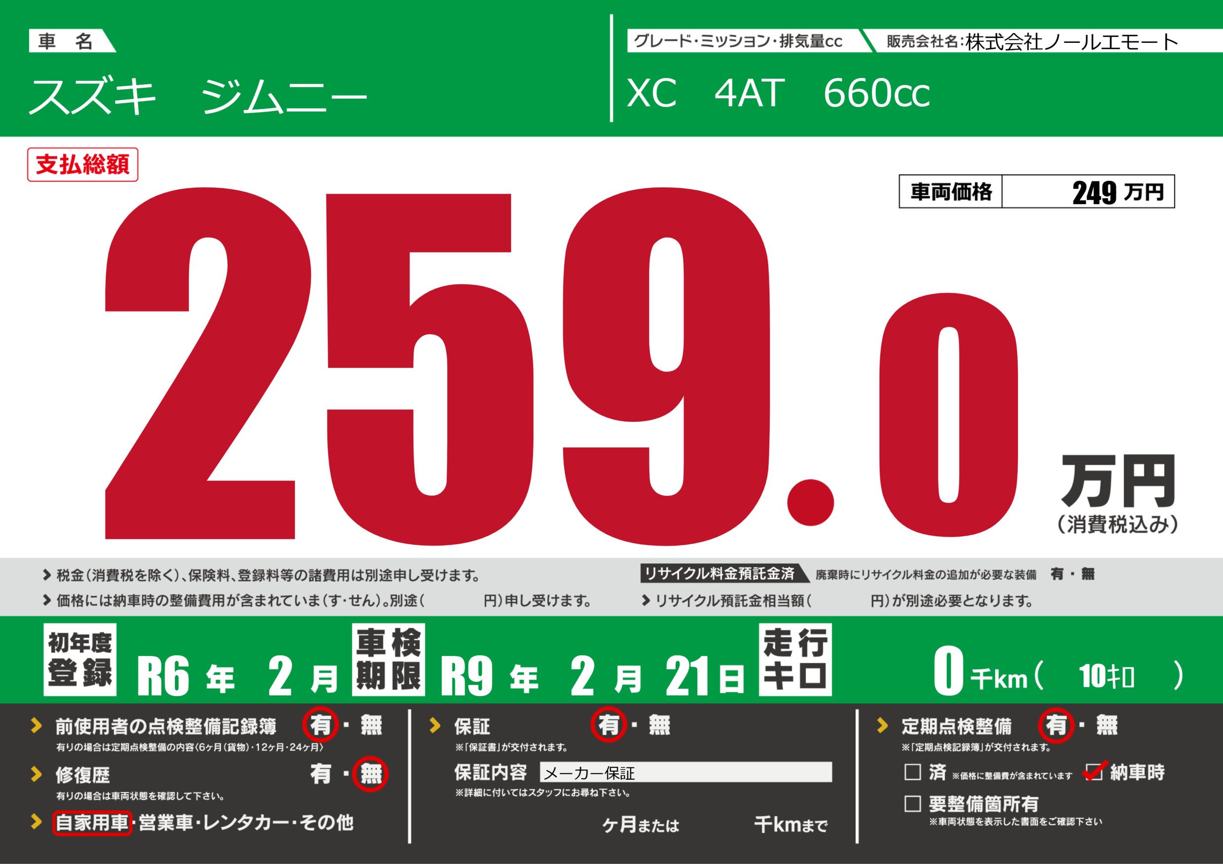 | 定期点検整備 | 定期点検整備あり 納車時あり | ||