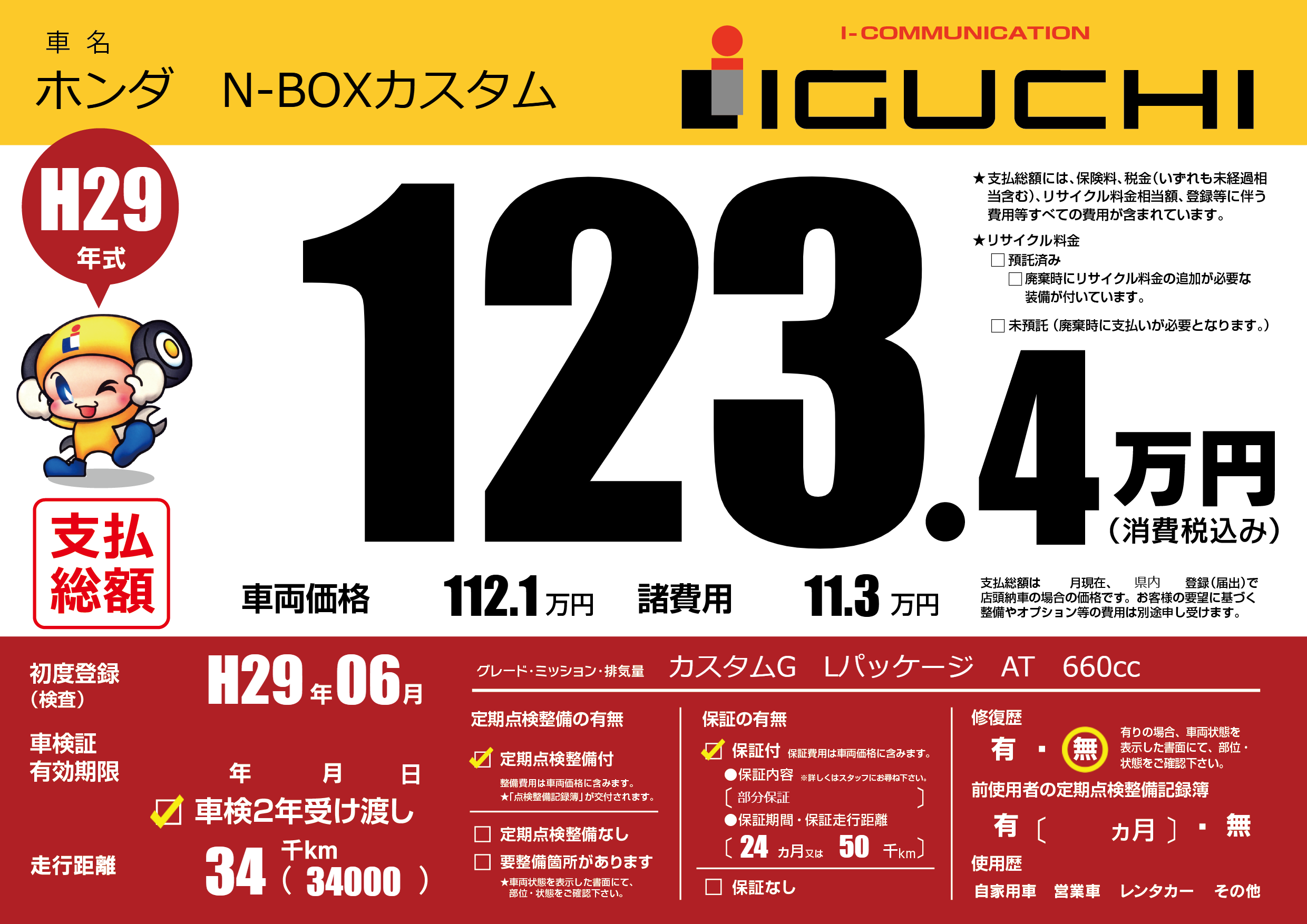 保証付き 保証内容(部分保証) 24ヶ月または(50)千kmまで |