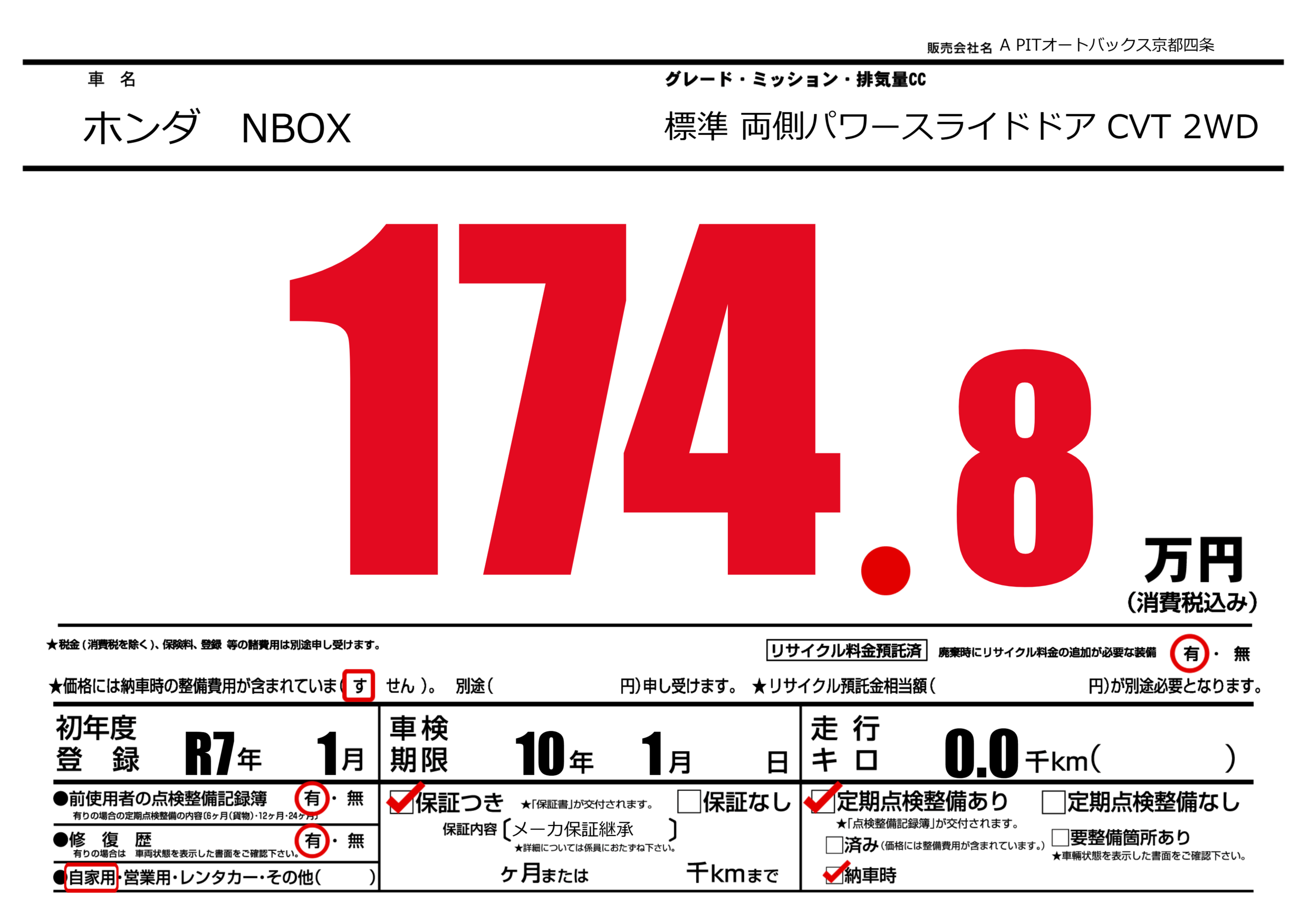 保証なし 保証内容(メーカ保証継承) ---ヶ月または()千kmまで |