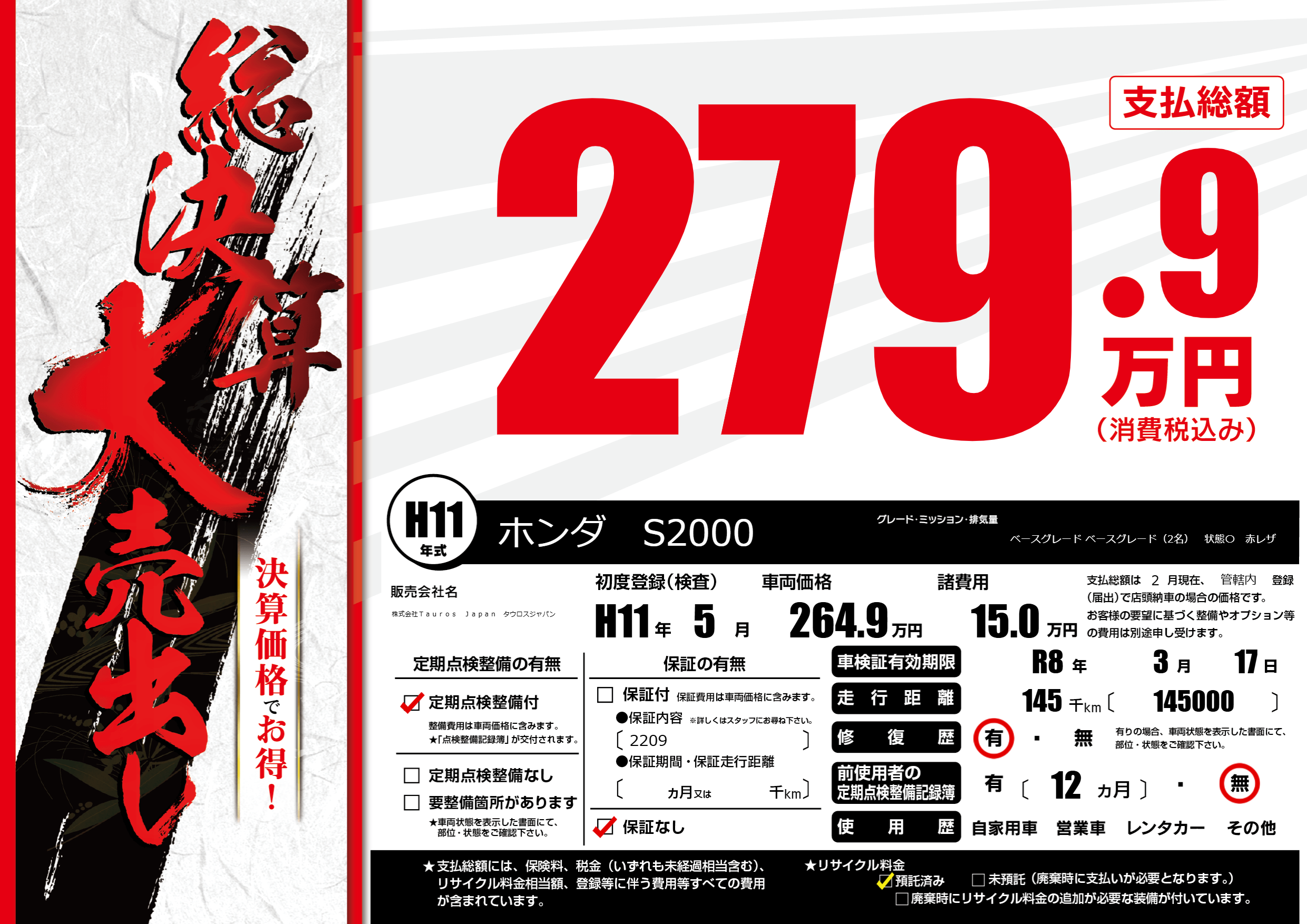 なし | 車検制限 | R8年3月17月 |