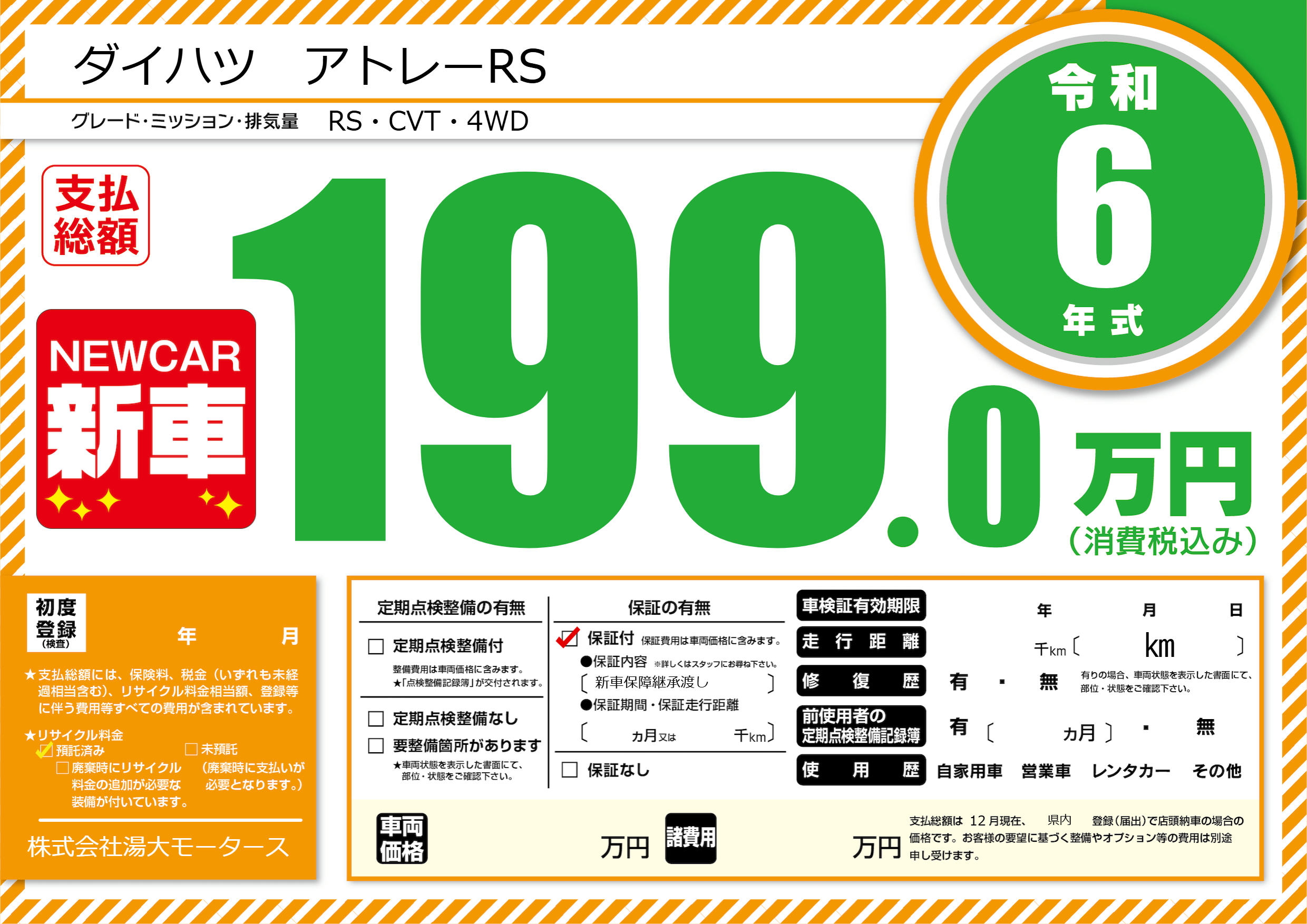 | 車名 | ダイハツ アトレーRS | グレード ミッション 排気量 |