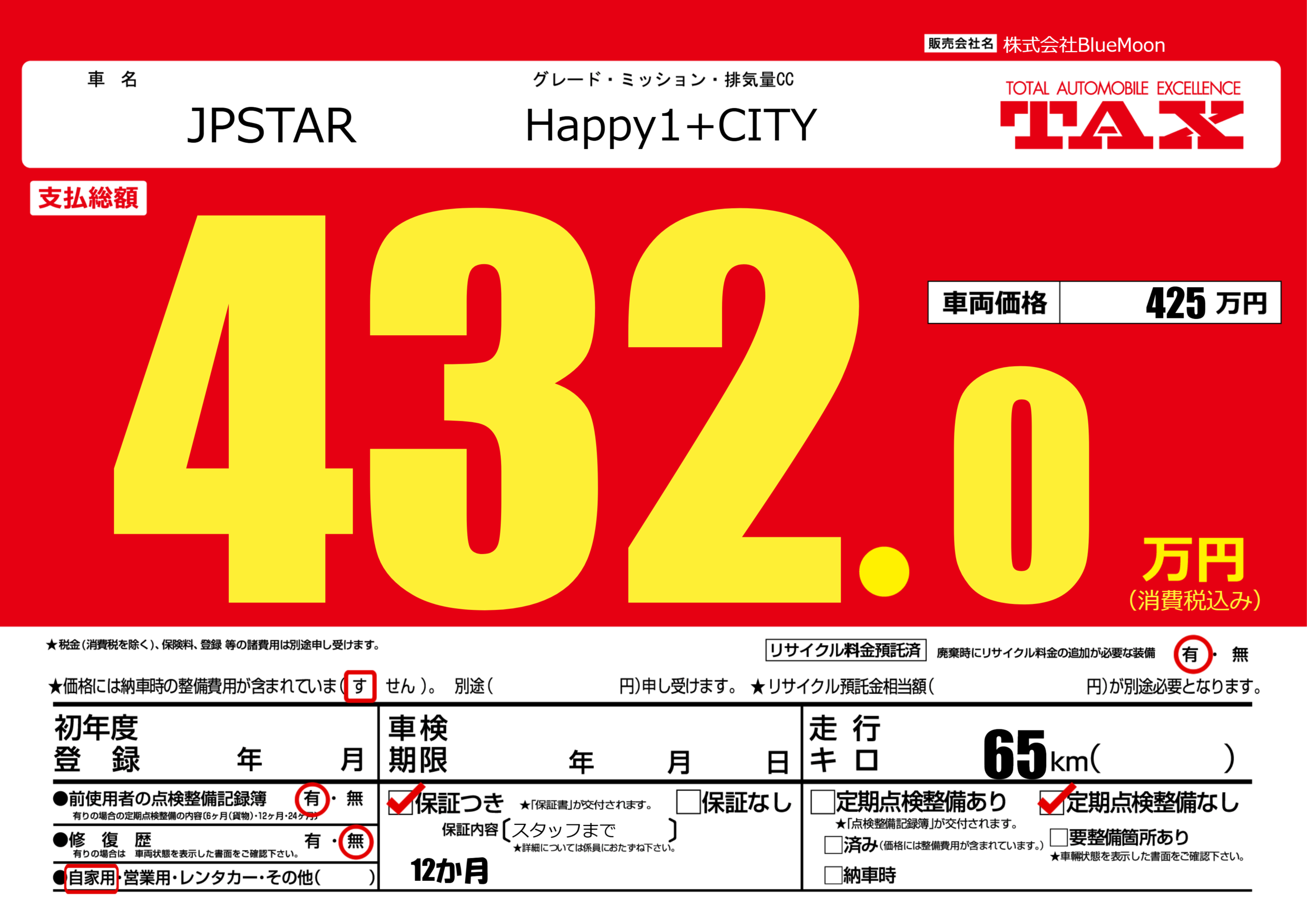 | 車名 | JPSTAR | グレード ミッション 排気量 |