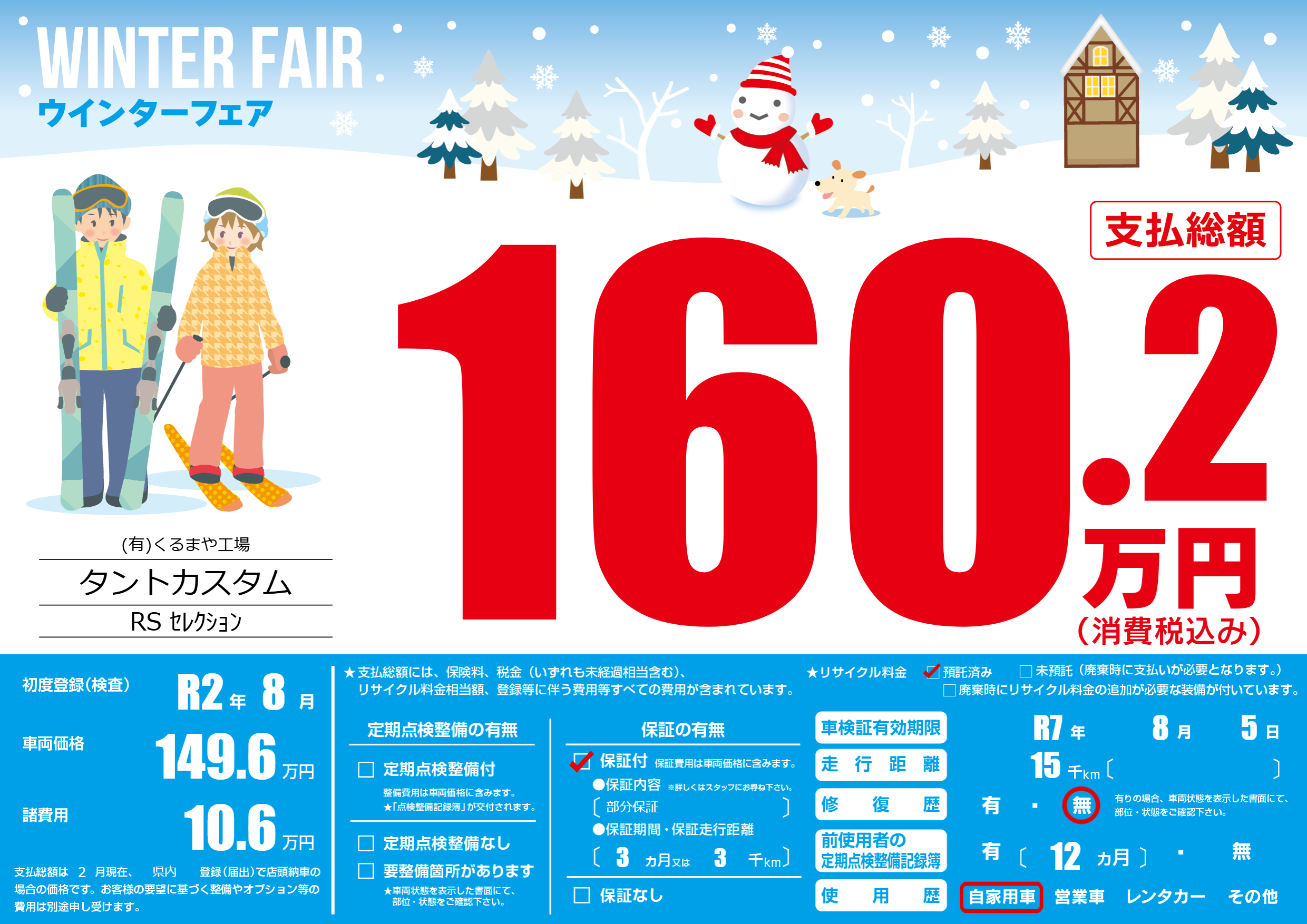 | 走行キロ | 1.5万km | 初年度登録 | R2年8月 |