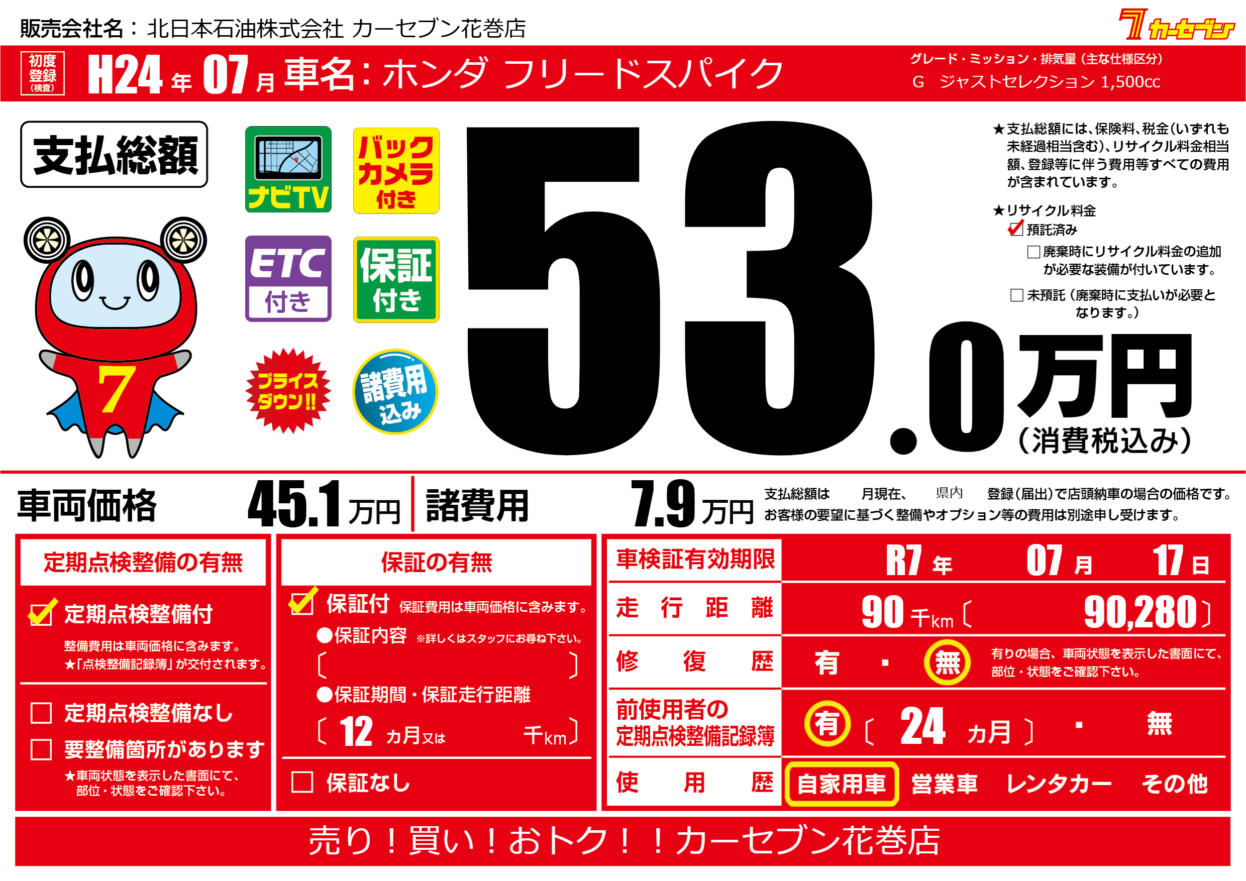 | 車検制限 | R7年 07月 17日 | ||