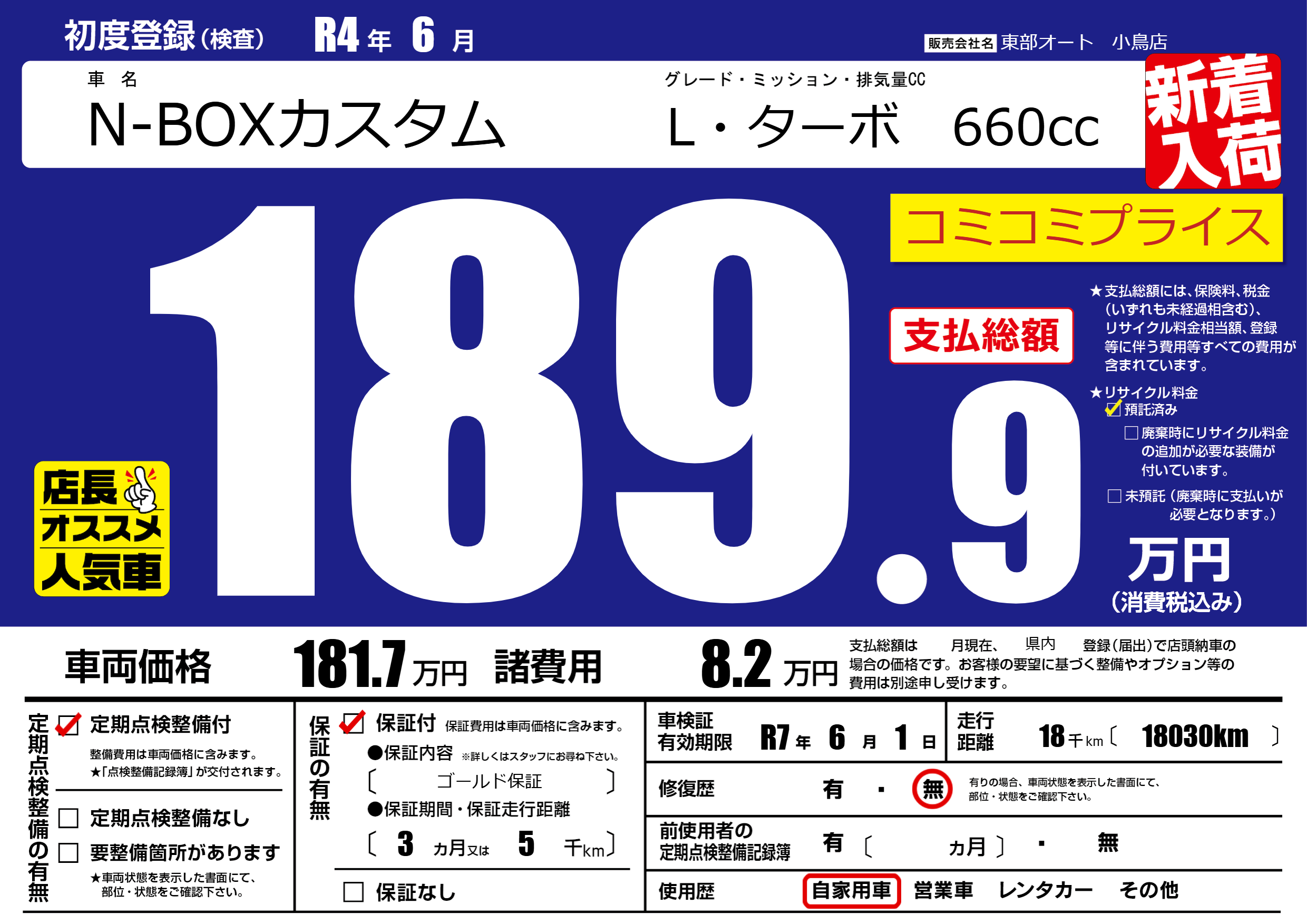 | 車検制限 | R7年 6月 1日 | ||