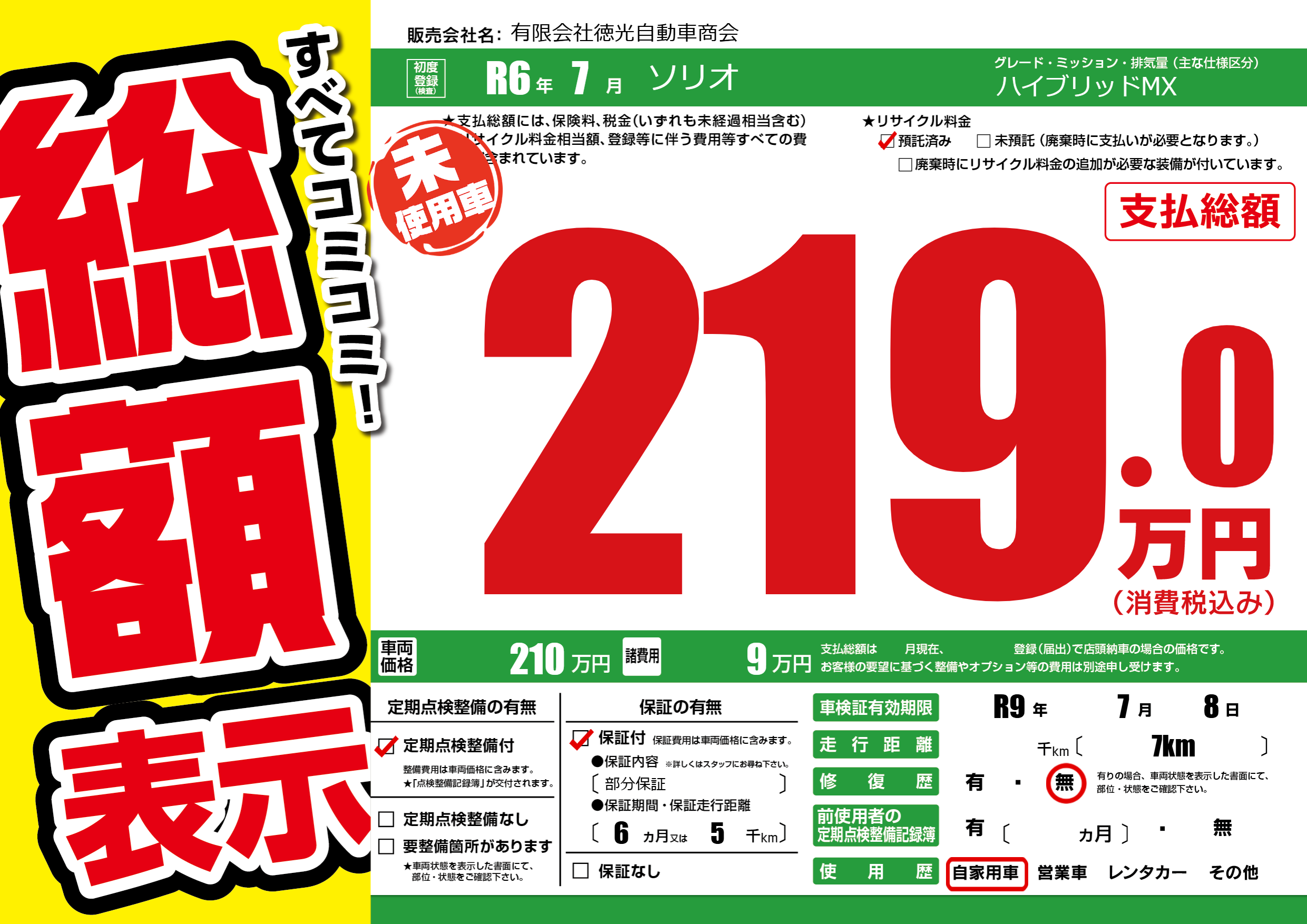 なし | 車検制限 | R9年7月8月 |