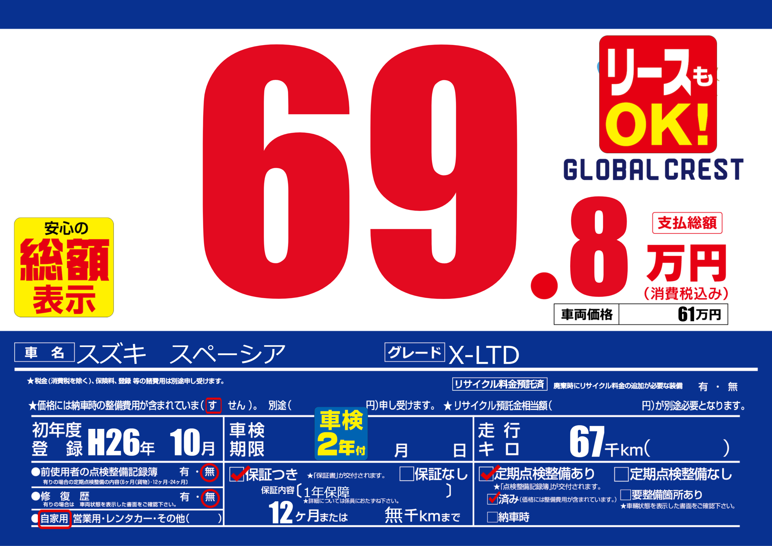 | 定期点検整備 | 定期点検整備あり 定期点検整備済み | ||
