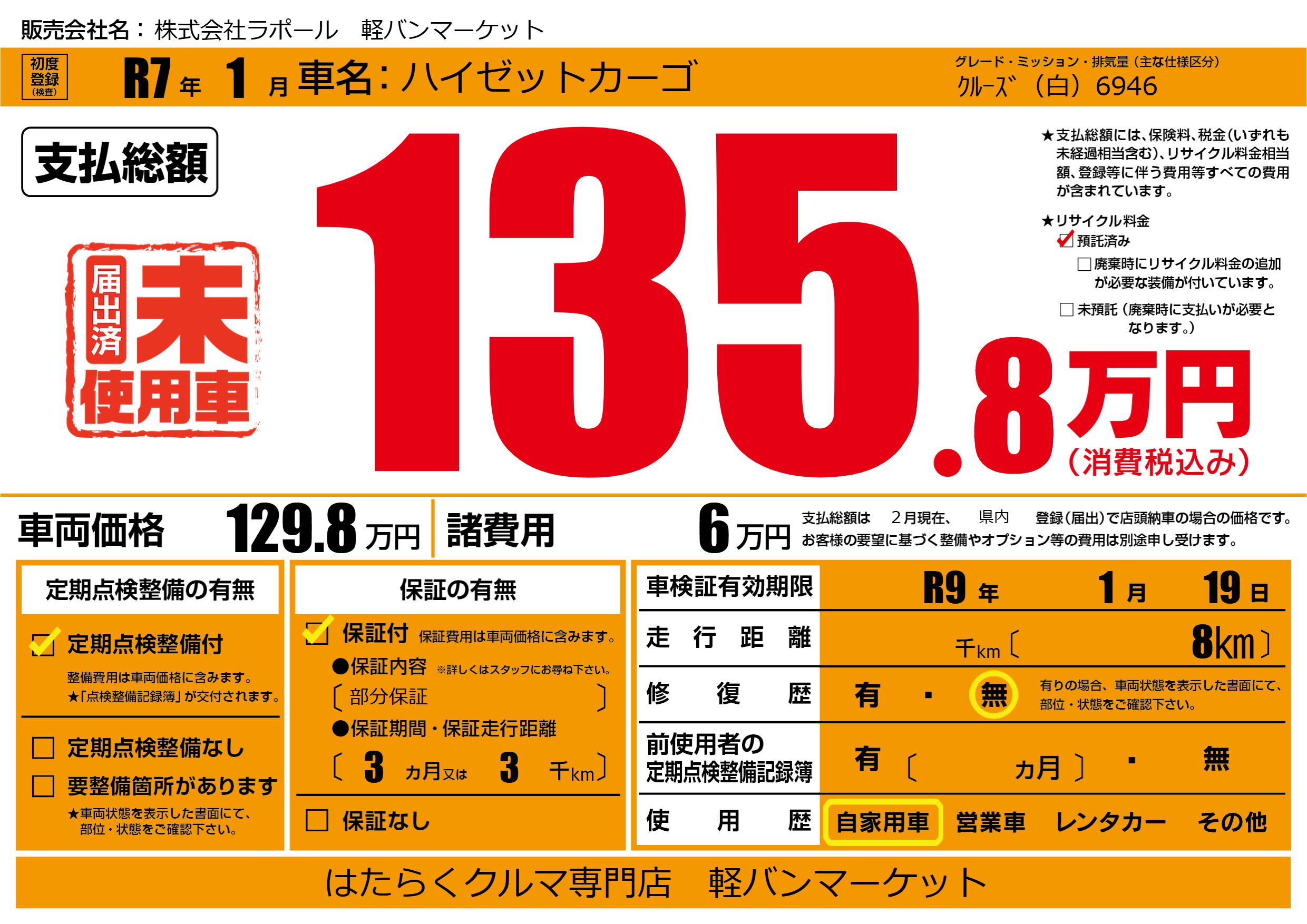 | 走行キロ | - | 初年度登録 | R7年1月 |