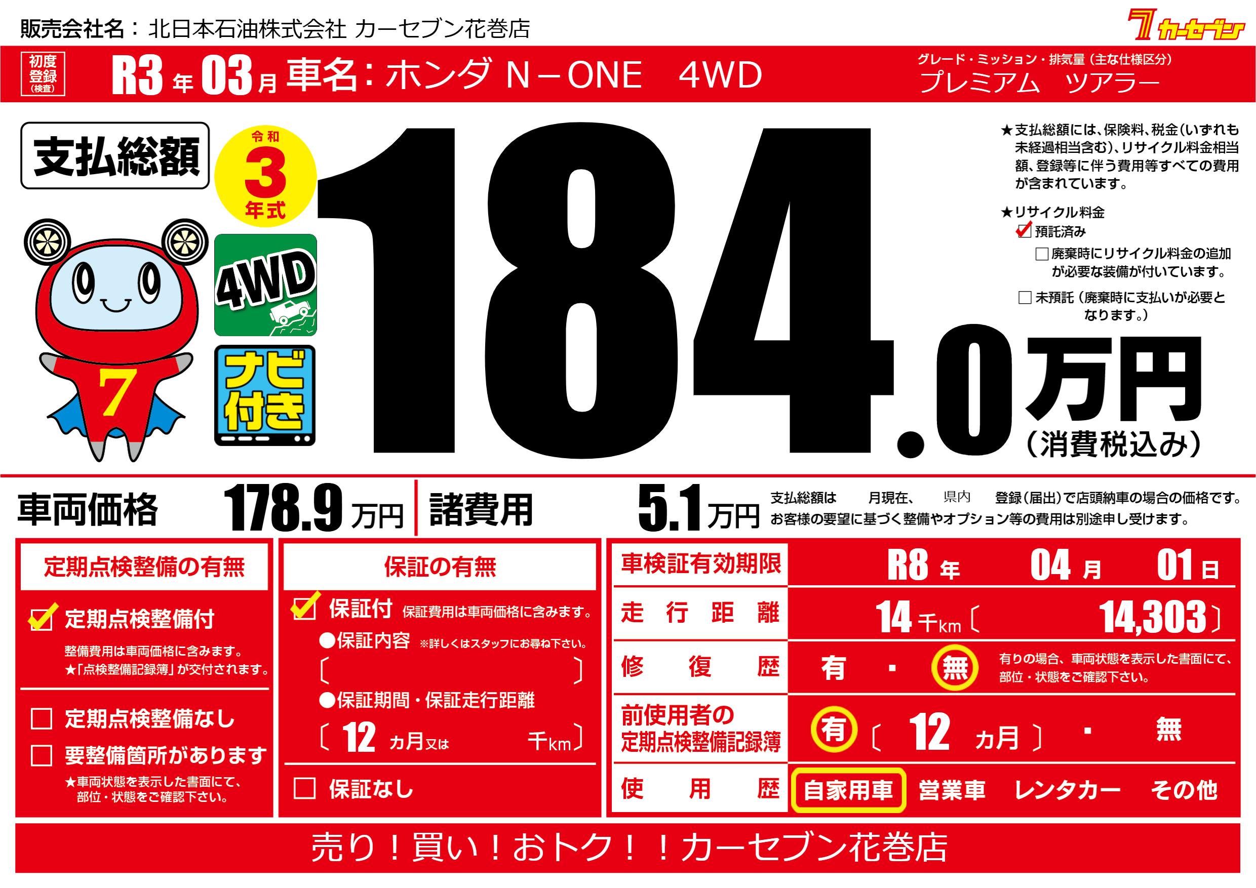 なし | 車検制限 | R8年04月01月 |