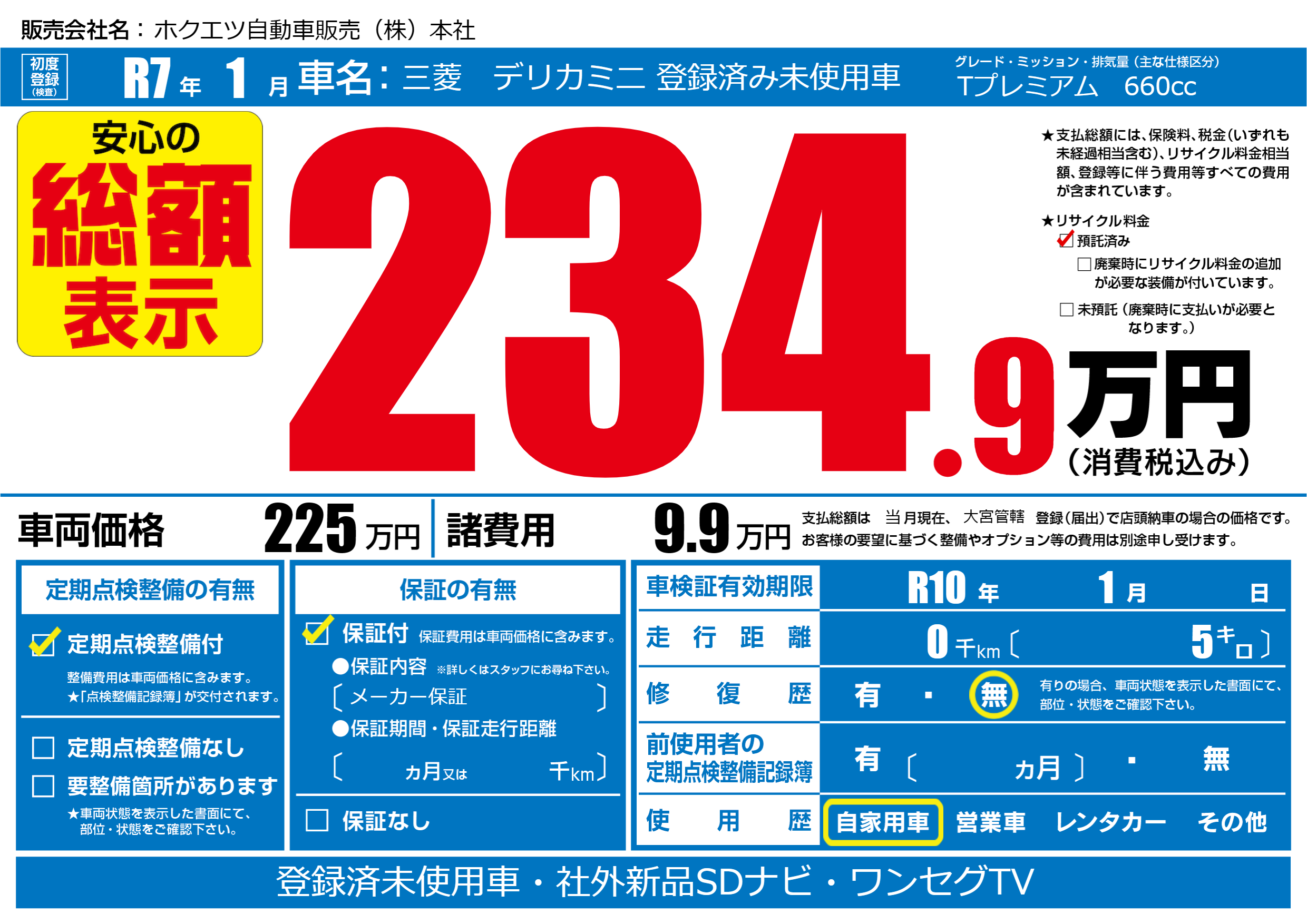 | 車名 | 三菱 デリカミニ 登録済み未使用車 | グレード ミッション 排気量 |