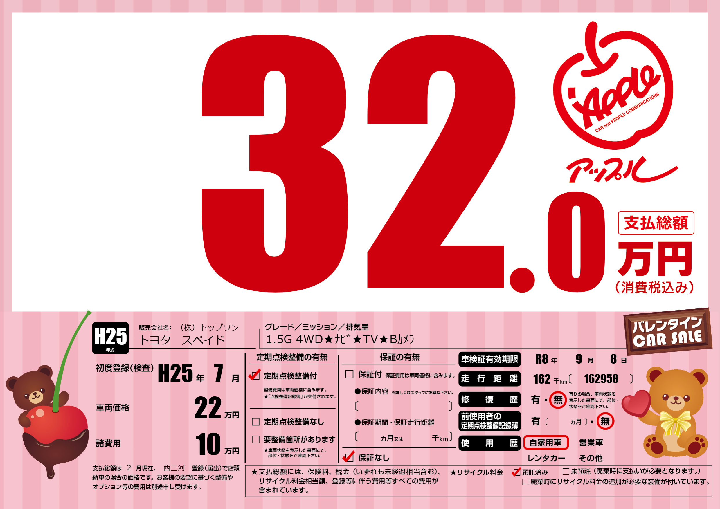 | 車名 | トヨタ スペイド | グレード ミッション 排気量 |