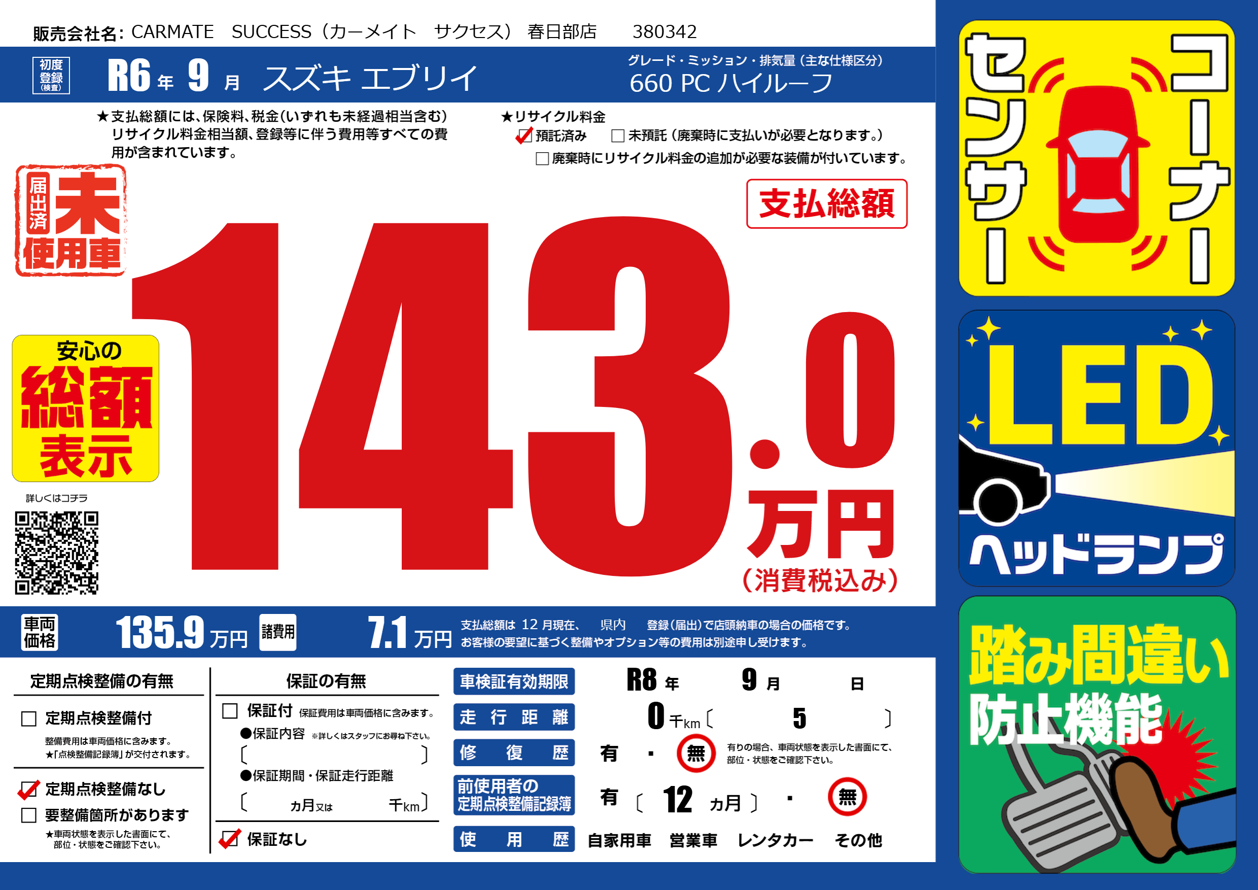 | 走行キロ | - | 初年度登録 | R6年9月 |