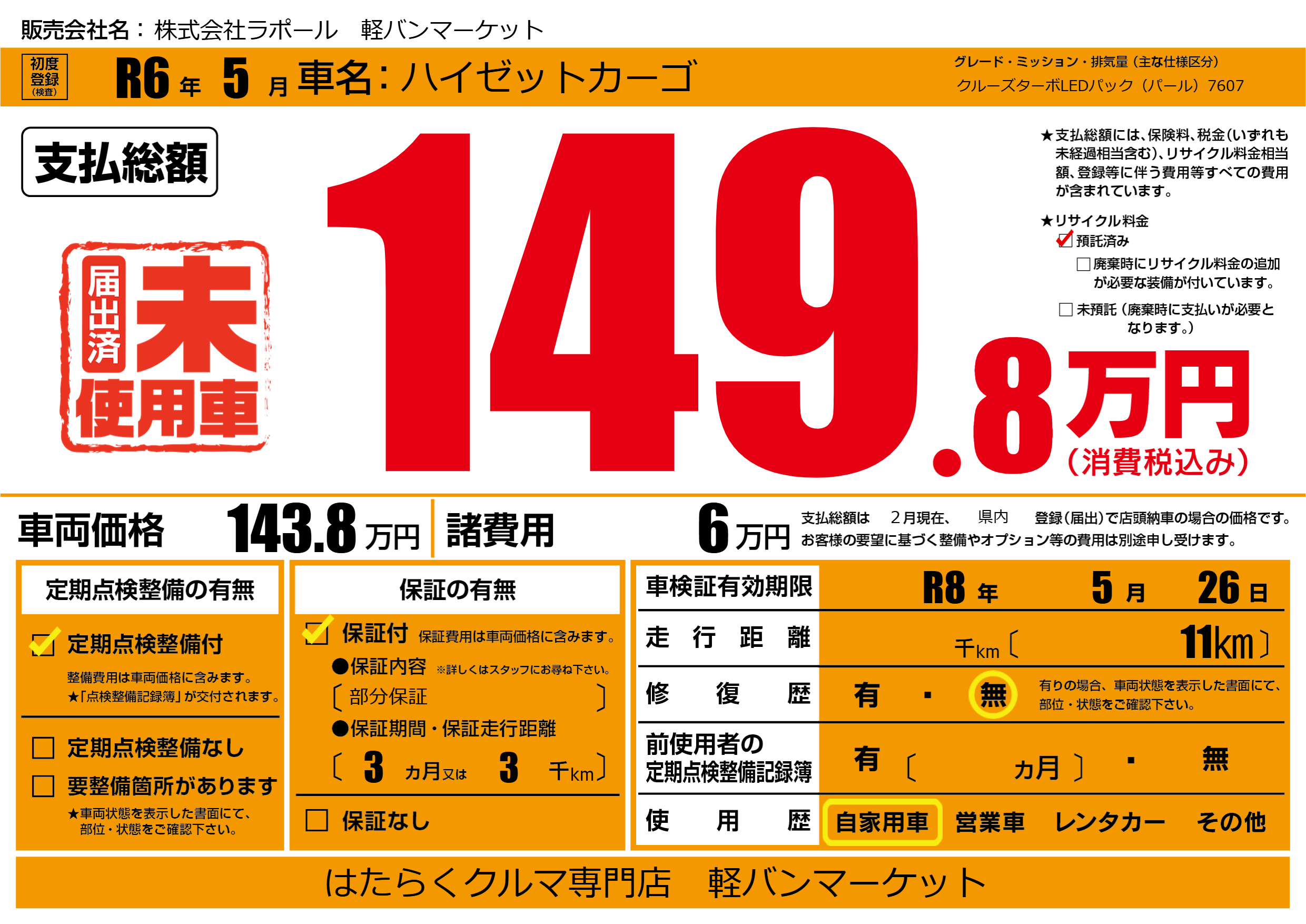 | 車検制限 | R8年 5月 26日 | ||