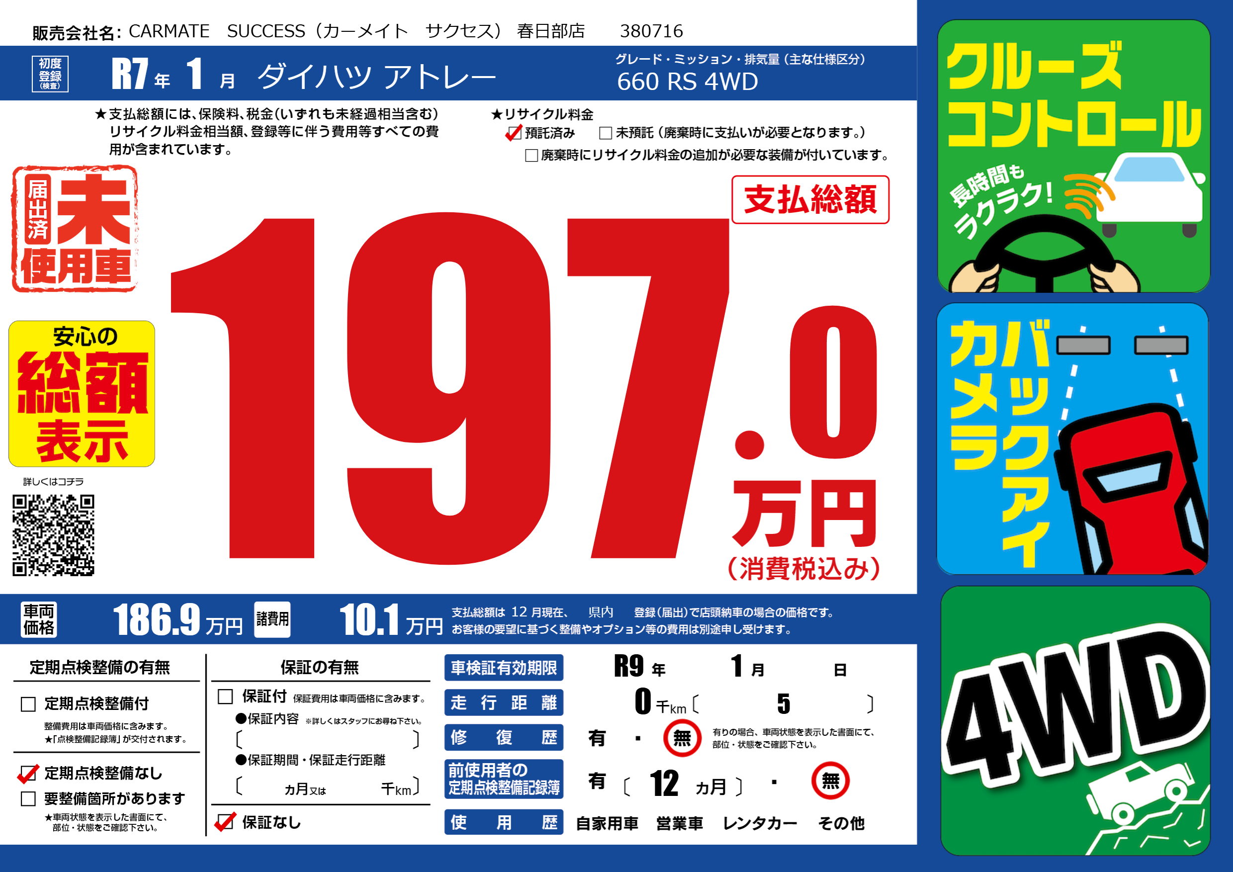 | 走行キロ | - | 初年度登録 | R7年1月 |